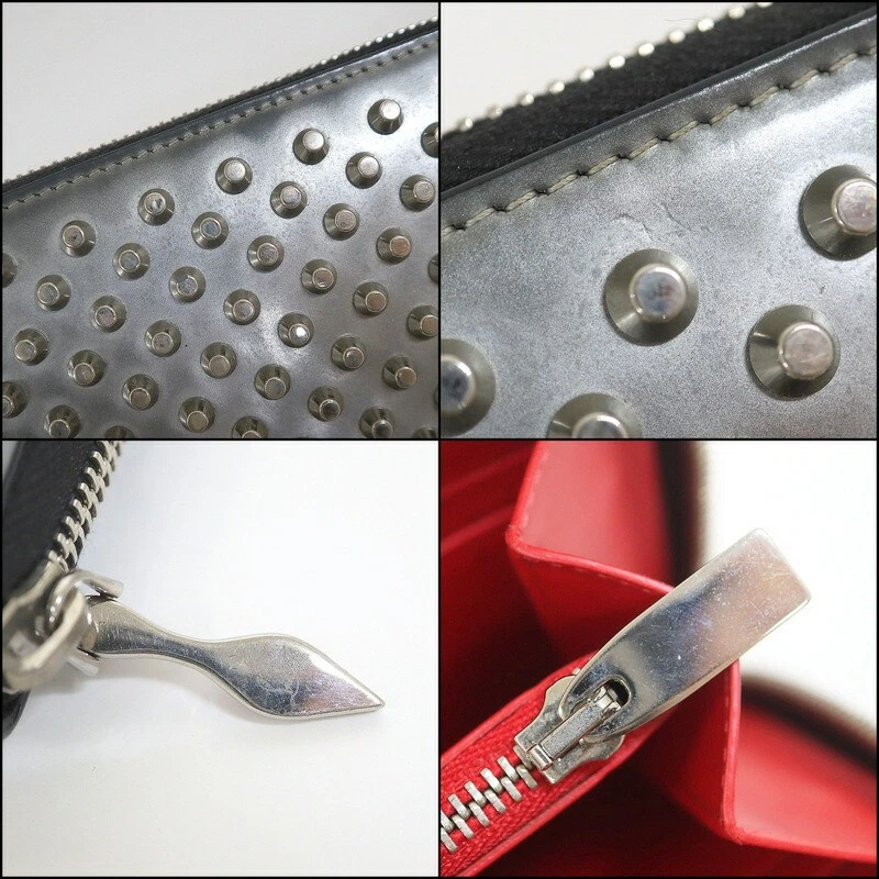 Used Christian Louboutin Panetone Spike Studs Wallet Silver Leather Key Features **Christian Louboutin Silver Leather Wallet** - **Brand:** Christian Louboutin - **Model:** 3175066 - **Color:** Silver - **Material:** Leather, Enamel - **Size:** - Width: 19.3 cm (7.6 inches) - Height: 9.7 cm (3.8 inches) - Depth: 2 cm (0.8 inches) - **Closure:** Round zipper - **Features:** - 2 bill compartments - 12 card slots - 2 coin pockets - **Condition:** - Rank: B (Used with noticeable wear) - Some wear on spikes, overall dullness, discoloration, and scratches on hardware - Interior and coin pockets show signs of darkening - **Accessories:** Includes original box and storage bag Please contact us for more information. Specifications Brand Christian Louboutin Country Japan Product Description Please feel free to contact us by message for further information on the detailed condition of the item. We may be able to offer a small discount on some items. Shipping We will ship by eBay SpeedPAK – Ship via FedEx or DHL. We usually ship within 10 business days of receiving cleared payment. It will be securely packed and shipped. We can only ship to the address listed in your eBay account. We can't accept address changes after purchase, so please be sure to change your address in advance if necessary. Depending on your location, there may be special charges in addition to regular shipping charges. About Us We are located in Japan. It's our pleasure to make you happy by proposing our recommend item. If you have any questions or request about items, please feel free to ask us. International Buyers - Please Note: Import duties, taxes, and charges are not included in the item price or shipping cost. These charges are the buyer's responsibility. Please check with your country's customs office to determine what these additional costs will be prior to bidding or buying. Thank you for your understanding.