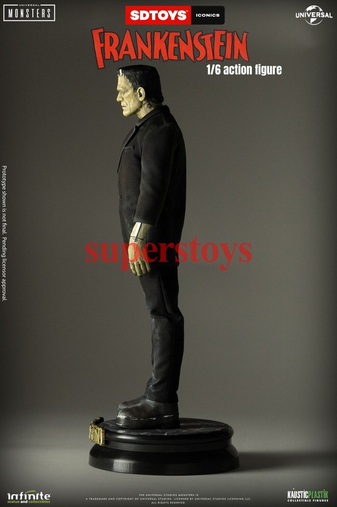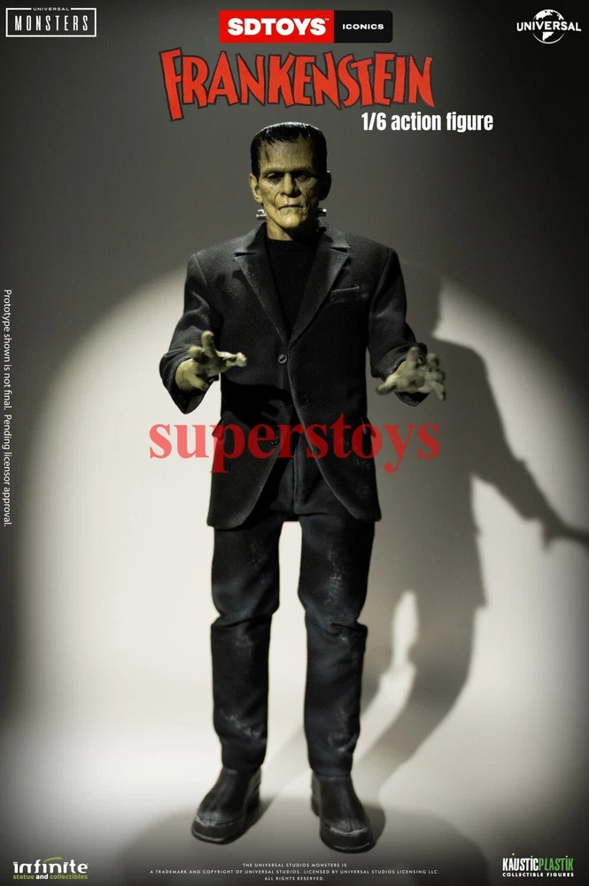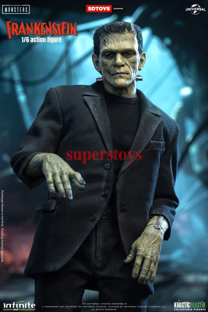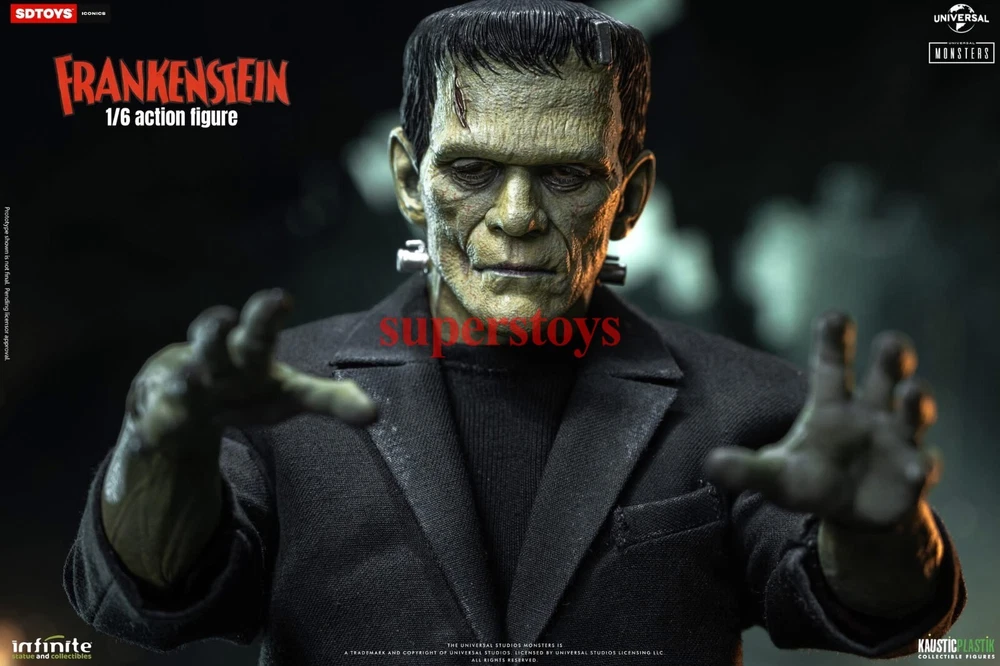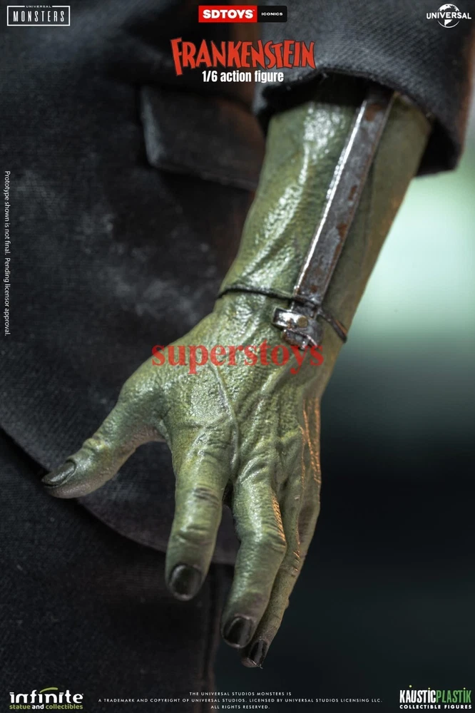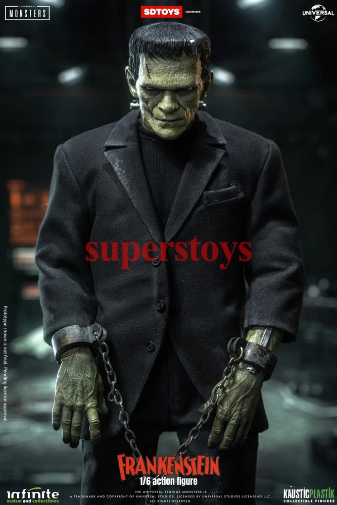 NOTE: This is a Presale Item Full payment is required for this presale. The release date automatically predicted by the eBay system is inaccurate, for more information about presale rules and item release dates, please feel free to contact me! Feel free to reach out if you have any other questions!!! Packing List: - One head with rollable eyes with Frankenstein's monster likeness 1931 - One Body aprox 32 cm tall with special knee articulation - 8 pair of hands - Black Jacket (Weathered) - Black Pants (Weathered) - Black Shirt - One pair of Black Boots (Magnetic) - Chains and handcuffs - Magnetic Stand - Luxury box