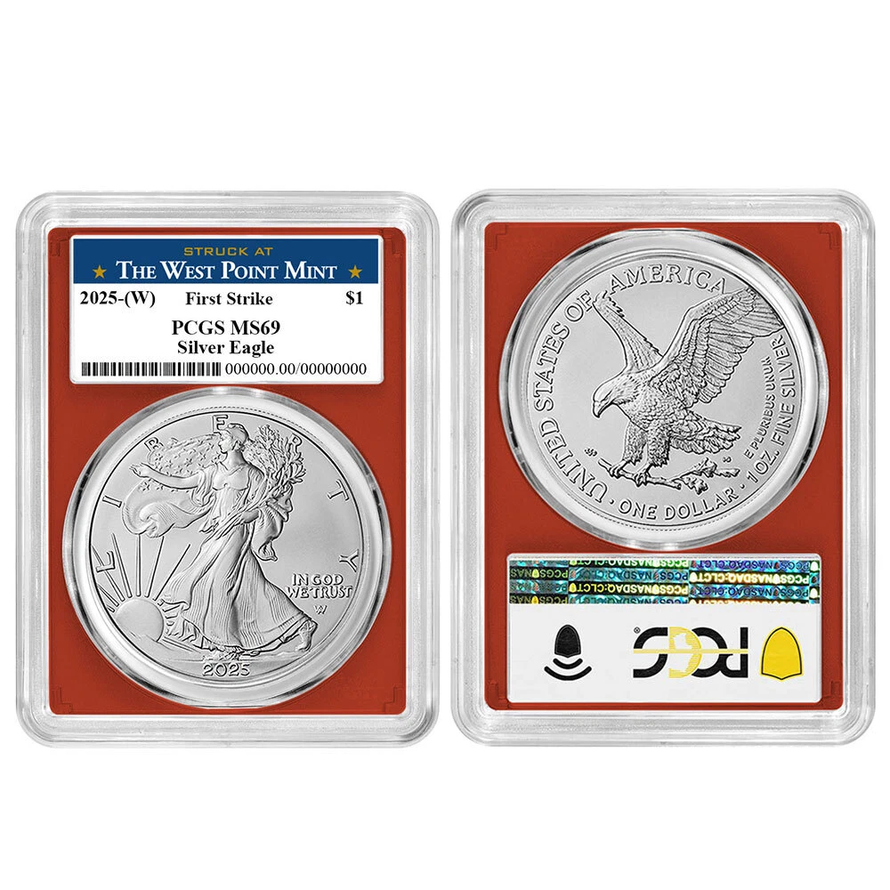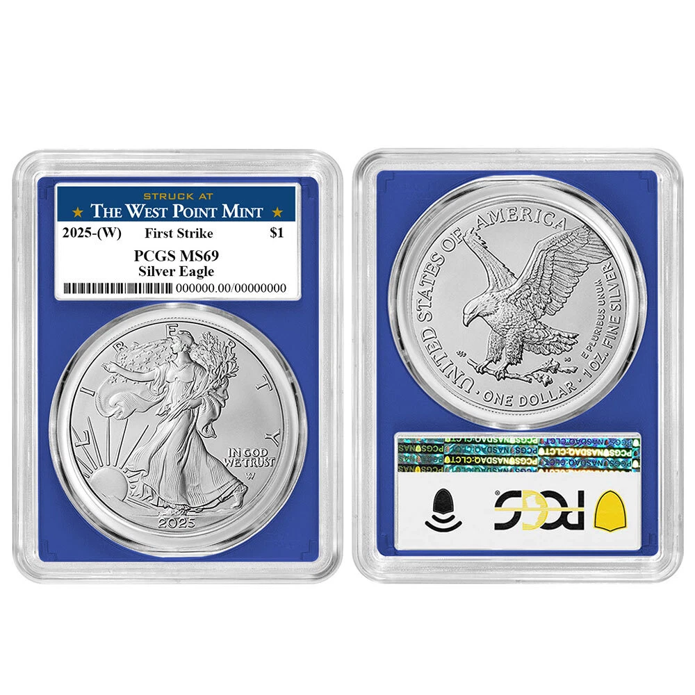 Free Shipping On All Orders Menu gold US Gold American Eagles American Buffalos Pre-33 Gold Gold Bars 1 oz Gold Bars Fractional Gold Bars Gold Rounds World Gold Coins Queen's Beast Series Canadian Maple Leafs S. African Krugerrands British Britannias Chinese Pandas Austrian Philharmonics silver US Silver American Eagles America The Beautiful 90% Silver 40% Silver Silver Rounds Silver Bars 1 oz Silver Bars 5 oz Silver Bars 10 oz Silver Bars Kilo oz Silver Bars 100 oz Silver Bars Silver Shot World Silver Queen's Beast Series Canadian Maple Leafs S. African Krugerrands British Britannias Chinese Pandas Austrian Philharmonics Mexican Libertads Australian Kangaroo's other Platinum Palladium Ancient Coins Error Coins Proof Sets Mint Sets Supplies and Publications auctions Store Categories Bullion Silver Eagles Gold Eagles Gold Buffalo Platinum Eagles First Spouse Gold Modern Commemoratives Ultra High Relief Pre-1933 U.S. Gold World Coins Error Coins Proof & Mint Sets Early U.S. Coinage Pre-33 U.S. Gold Morgan & Peace Silver $1 Dollars $1 Half Dollar 50c Quarters 25c Dime 10c Nickel 5c Small Cent 1c Supplies & Publications Original Government Packaging Ancient Coins No Reserve Auctions Other Store newsletter Add our store to your Favorites to receive our email newsletters about new items & special promotions. Sign up Presale - 2025 (W) $1 American Silver Eagle 3pc Set PCGS MS69 FS West Point L... Product Description Presale Item (Estimated Ship Date 1/24/2025) Please note if your order includes a presale item, the order will be delayed until the presale item becomes available for shipping. Please note that these are business strike coins. PCGS will designate the U.S. Mint facility that struck these coins by including the mint mark in parentheses on the label. The mint mark contained in parentheses is not present on the coin. The American Silver Eagle is considered one of the most popular coins worldwide. The creation of these iconic 1 Troy oz of .999 fine silver coins was authorized through the Liberty Coin Act of 1985, and production began in 1986. Known to many as the official bullion coin of the United States, a redesign was introduced by the U.S. Mint in 2021. The original obverse design, based on Adolph A. Weinman’s 1916 “Walking Liberty” half dollar, has been updated with the help of modern technology. Now a closer reflection of Weinman’s original design, the obverse includes the addition of the traditional artist’s mark on the coin itself. As with the obverse, the reverse of the Silver Eagle also received an update in design. Before the summer of 2021, the design was that of the heraldic eagle of the United States, which was created by the former Chief Engraver of the United States Mint, John Mercanti. This design features an American bald eagle behind a heraldic shield with arrows and an olive branch in its talons. The new reverse design, also known as “Eagle Landing,” shows an eagle approaching a landing, carrying an oak branch to add to a nest. One of the U.S. Mint’s Artistic Infusion Program designers, Emily Damstra, created this new reverse design. Coin Features: 1 Troy oz .999 Silver Shipped in protective packaging Shop with confidence knowing when you buy from Pinehurst Coins, you are buying the best. Each coin has been carefully assessed by the Professional Coin Grading Service (PCGS) and is certified to be in near-perfect condition. These coins are shipped in their original PCGS certification slabs to protect their condition. Coins arrive in protective slabs courtesy of the PCGS Free Shipping on all orders The coin pictured is only a representation of the coin you will receive, not the exact coin (serial numbers will vary) If you have any questions or concerns, please do not hesitate to contact us. Our dedicated Customer Service team will be happy to assist you M-F from 9 am to 5 pm EST. Shipping Payment Returns About Us Shipping We offer free shipping on all of our listings! All items must be shipped directly to your registered eBay address, no exceptions. We will not ship it to an alternative or forwarding address. All of our packages are fully insured. Orders over $750.00 require Signature Confirmation. No insurance claim will be processed if the United States Postal Service or any other carrier designates the package as delivered via tracking number, regardless of circumstance. In general, we ship items using USPS First Class Mail or FedEx Ground. Other methods may be used depending on circumstance. eBay will post an estimated shipping time as soon as shipping information is uploaded to an order. This time frame is only an estimate, not a guarantee. Please be sure to verify that your order is correct prior to submitting payment. Once an order is placed it can only be canceled not adjusted. Orders are processed quickly and once they are moved to our shipping department an order can no longer be canceled, it would have to be returned (all returns are subject to restocking fees). Disclaimer: Once the item has left our facilities, it is under the control of the third party shipping service. We always do our best to provide our customers with speedy service; however some things are out of our control. There is always the possibility for a delay due to these third party services or the possibility of a product becoming damaged or lost in transit. The simple fact is, all of the above-described scenarios are unacceptable to us and we will never put this burden on our customers. If anything happens to a product in transit, we will always be willing to replace the product. Customer satisfaction is our number one priority and we do whatever we can to accommodate you. Pinehurst Coins will not accept purchases for any item that is mispriced due to technical issues, regardless if those issues are caused by eBay's system or our own. All mispriced orders will be canceled and your money will be completely refunded immediately. Payment For large orders with customers that we d