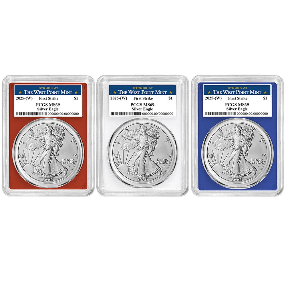 eBay Modern US Coins World Coins Classic Coins Ancient Coins Morgan Silver Dollars Foil Notes Bullion Gold Coin Sets Shop Categories Modern US Coins World Coins Classic Coins Ancient Coins Morgan Silver Dollars Foil Notes Bullion Gold Coin Sets Presale - 3pc Set - 2025 (W) $1 1-oz American Silver Eagle PCGS MS69 FS West ... Item Description Presale Item (Estimated Ship Date 1/24/2025) Please note if your order includes a presale item, the order will be delayed until the presale item becomes available for shipping. The American Silver Eagle: A Popular Bullion Coin The American Silver Eagle is one of the world’s most popular silver bullion coins. Authorized by the Liberty Coin Act of 1985, these coins are made from one troy ounce of .999 fine silver and first went into production in 1986. The U.S. Mint introduced a redesign in 2021. The obverse (heads side) design is based on Adolph A. Weinman’s “Walking Liberty” half dollar from 1916. Modern technology allowed for a more accurate reflection of Weinman’s original design, including the addition of his artist’s mark. The reverse (tails side) originally featured the American heraldic eagle designed by John Mercanti, the former Chief Engraver of the U.S. Mint. This design showed a bald eagle behind a shield, clutching arrows and an olive branch. The new “Eagle Landing” design depicts an eagle carrying an oak branch towards a nest. This design was created by Emily Damstra, one of the artists participating in the U.S. Mint’s Artistic Infusion Program. ModernCoinMart offers only the finest certified coins, ensuring you get the very best. Every single coin has been carefully evaluated and authenticated by the prestigious Professional Coin Grading Service (PCGS). Buy with confidence knowing you’re getting a top-quality piece from a reputable dealer. Each coin is secured in its official PCGS slab, offering superior protection Free Shipping on all orders The pictured coin is a representation only. The coin you receive may have variations, including a unique serial number. We are here to help. If you have any questions, our friendly customer service team is just a phone call away. Reach out to us Monday through Friday, 9am to 5pm EST. Don’t let this opportunity slip away! Add this PCGS-certified coin to your collection today. Terms International Returns/Cancellations About Us Terms Payment Precious metals markets are fluid therefore immediate payment through eBay is required at time of purchase for all listings. Buyer is locked in at the price at the time of sale. We cannot make any price adjustments after the sale is complete. Prices can continuously change up or down until the point of payment. Shipping Signature is required on all invoices over $750. Final shipping methods are chosen at the discretion of our shipping department. Listings MCM will not honor any sale where a typographical or computer error is made as determined by either us or by eBay. Product Photo Policy: MCM attempts to display product images shown on the site as accurately as possible. We take all of our photos in house and due to reflections on the mirrored or proof surfaces of a coin there may appear to be 'black' when there is not. If a coin has a color on it at all it will be described as 'colorized' in the description or title. Due to the large inventory we sell, we use stock photos. Serial numbers will vary from the image shown unless specifically stated in the product listing that the item pictured is the item you will receive International INTERNATIONAL ORDERS POLICY: We are accepting international orders through ebay's International Shipping Program. Any additional import duties, customs fees, shipping/handling charges or taxes are not included in the item price or shipping cost. These charges are the customer's responsibility. Please check with your country's customs office, postal office or local UPS office to determine what these additional costs will be prior to purchasing. We only use UPS and FedEx as our couriers and we can ONLY ship to your eBay registered shipping address. We do not ship to any other address that is not listed on eBay, or to any shipping companies, storage units, etc. Returns/Cancellation Returns/Cancellations The Company encourages you to examine your purchase immediately upon receipt, and call our toll free number at 1-800-362-9004 during Customer Service hours in the event of any issues or concerns. Bullion Items Non-Returnable, Final Sale ALL BULLION ITEMS ARE FINAL SALE. Due to the volatile nature of the bullion market all gold, silver, platinum and palladium bullion sales are final. You may cancel your order, however all cancellations will be subject to any market loss as described in our Market Loss Policy. Market Loss Policy Upon placing your order the transaction becomes a binding agreement, whether buying or selling. Your price becomes locked-in as soon as you click “place order” during the checkout process. If you cancel your order once placed, any amount refunded will be offset by our current buy price. For additional clarity, you will be responsible for any loss in value incurred during the cancellation process Refunds of non-bullion items are for the cost of product only; shipping and handling charges are not refundable, unless otherwise stated by Company. Company will refund the purchase price to the customer in the same manner in which the original purchase was made, i.e., credit card purchases will be credited back to the credit card used. An balance due and owing on a returned item will be deducted from the refunded amount prior to crediting the customer's account. Beyond the 14-day return period, Company is under no obligation to accept return of any product, but may in its discretion do so pursuant to this policy, for up to one year from the invoice date. About Us ModernCoinMart (MCM) was launched in 2004 and quickly set the standards for online sales of bullion, US coins and world coins. Join over 10