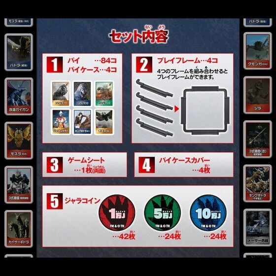 Presale BANDAI Donjara NEO Godzilla new GIFT Description ●Condition : New ●Release date: February 2025 New “Donjara NEO Godzilla” commemorating the 70th anniversary of Godzilla! Includes 30 Godzillas from “Godzilla (1954)” to “Godzilla-1.0”! ~The set also includes 53 non-Godzilla characters, including monsters and Toho mecha. Product Description To commemorate the 70th anniversary of Godzilla, we are releasing “Donjara NEO Godzilla”. The newest format in the Donjara series, “Donjara NEO” can be removed from its frame and stored compactly, making it easy to take with you anytime, anywhere. It can be played by two people or more, and the frame can be split to suit the scene of use. The set includes not only 30 successive Godzillas from “Godzilla (1954)” to “Godzilla-1.0,” but also 53 types of non-Godzilla characters such as monsters and Toho mecha. Since all pies are pictured differently, the set has a strong collectible element. There are numerous roles for each work and each generation, making this a game that takes advantage of 70 years of history to achieve a high score. In addition, the game sheet on the board is double-sided with the 70th anniversary logo and a collection of famous scenes from the past, which can be placed alongside the pies and enjoyed as interior decoration. Contents of the set Pies ... 84 pies Pie case ... 4 pies Play frame ... 4 pieces Game sheet ... 1 sheet (both sides) Pie case cover ... 4 pieces 100,000 Jara coins ... 24 50,000 Jarra coins...24 10,000 Jarra coins...42 pieces Product size Pie...H approx. 25mm x W approx. 19mm x D approx. 13mm Pie case...H approx. 80mm x W approx. 139mm x D approx. 14mm Play frame ... H approx. 65mm x W approx. 290mm x D approx. 14mm Game sheet ...H approx. 281mm x W approx. 281mm x D approx. 1mm Pie case cover ... H approx. 81mm x W approx. 138mm x D approx. 15mm Jara coin sheet ... H approx. 280mm x W approx. 140mm x D approx. 1mm Product material Pie ... ABS Pie case ... ABS Play frame ... ABS Game sheet ... PP Pie case cover ... Paper Jara coin sheet ... Paper Ages 6 years old and up Shipping The delivery method is Japan Post. This does not include holidays Following estimated transit times to your location - North America : 5 to 14 business days - Asia, Oceania : 5 to 14 business days - Europe : 7 to 14 business days - Rest of the world : 7 to 21 business days *There is also possibility of incurring extended area surcharge when the shipping address is far from the regular courier delivery path. *Delivery time varies by destination and by factors such as weather, custom clearance condition etc. *If your item does not arrive in the given time, please contact us, preferrably without opening a case. International Buyers - Please Note: Import duties, taxes, and charges are not included in the item price or shipping cost. These charges are the buyer's responsibility. Please check with your country's customs office to determine what these additional costs will be prior to bidding or buying. Thank you for your understanding.