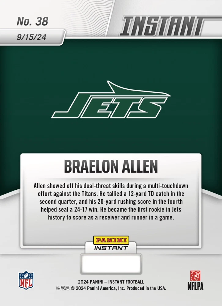 THIS IS A PRESALE ORDER SET FOR 40 DAY DELIVERY. Please see the GRADED GEM-MT 10 VICTOR WEMBANYAMA 2023 PANINI FIRST LOOK RPS-1 and CAITLIN CLARK DRAFT DAY ROOKIE in the listing to see what your card will look like Graded! You have the option of the BASE Ungraded Card or a Graded GEM-MT 10! PLEASE BE SURE TO CLICK ON THE CORRECT ITEM THAT YOU WANT We have many more cards that aren't listed so feel free to ask if we have other items you are interested in. JDCC Authorized & Inspected AUTHENTIC MEMORABILIA Micro Graded BRAELON ALLEN 2024 Panini GRADED GEM-MT 10 Rookie CARD #38! COA! Cards are Professionally inspected, encased and sealed by JDCC - JD’S Coins & Collectibles Inc.! This item is encased in a Crystal Clear Slab with tamper proof #'d hologram sticker and Certificate of Authenticity marked label for extra security and authenticity! The matching SERIAL #’D JDCC COA will accompany this item. Any tampering or removal of the hologram labels will void the JDCC grading authenticity of the item encased. For further protection the case is fitted with a plastic sleeve. It is best to keep the item in the plastic sleeve to protect the slab from any scratches, etc. This is a beautiful product for display and safekeeping! PLEASE FOLLOW OUR STORE FOR NEW INVENTORY & EXCLUSIVE OFFERS! I combine shipping at .50 cents per additional item capped at $9.99. International rates are $14.99. Feel free to send me offers for multiple items and qualify for discount shipping rates and lower costs per item! I send daily invoices every morning so be sure to wait for your combined shipping invoice before checkout or request an invoice when you are ready to pay. Please keep in mind shipping and handling fees don't just cover postage but also ebay/paypal fees, supplies, taxes and other costs. 5 Star feedback is Greatly appreciated and FOLLOW our store for New Inventory! Good luck and enjoy!