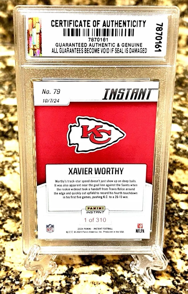 THIS IS A PRESALE ORDER SET FOR 40 DAY DELIVERY. You will receive JDCC Authorized & Inspected AUTHENTIC MEMORABILIA Micro Graded GEM-MT 10 Cooper DEJEAN Super Bowl Pick 6 2024 Panini GRADED GEM-MT 10 Rookie CARD #287! COA! Cards are Professionally inspected, encased and sealed by JDCC - JD’S Coins & Collectibles Inc.! This item is encased in a Crystal Clear Slab with tamper proof #'d hologram sticker and Certificate of Authenticity marked label for extra security and authenticity! The matching SERIAL #’D JDCC COA will accompany this item. Any tampering or removal of the hologram labels will void the JDCC grading authenticity of the item encased. For further protection the case is fitted with a plastic sleeve. It is best to keep the item in the plastic sleeve to protect the slab from any scratches, etc. This is a beautiful product for display and safekeeping! PLEASE FOLLOW OUR STORE FOR NEW INVENTORY & EXCLUSIVE OFFERS! I combine shipping at .50 cents per additional item capped at $9.99. International rates are $14.99. Feel free to send me offers for multiple items and qualify for discount shipping rates and lower costs per item! I send daily invoices every morning so be sure to wait for your combined shipping invoice before checkout or request an invoice when you are ready to pay. Please keep in mind shipping and handling fees don't just cover postage but also ebay/paypal fees, supplies, taxes and other costs. 5 Star feedback is Greatly appreciated and FOLLOW our store for New Inventory! Good luck and enjoy!