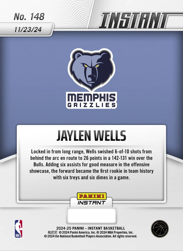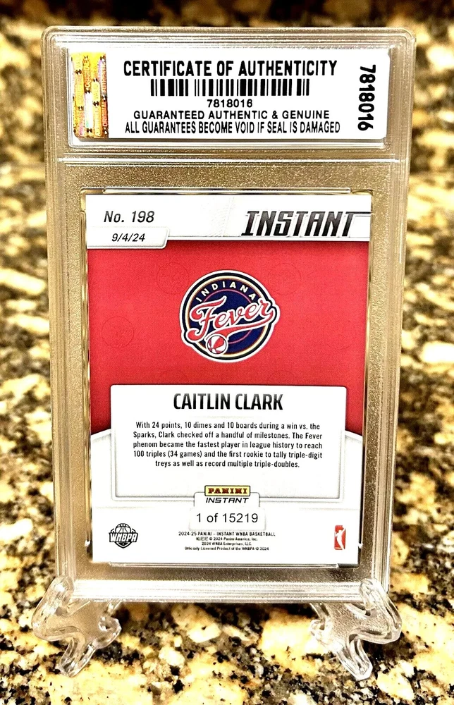 THIS IS A PRESALE ORDER SET FOR APPROXIMATELY 40 DAY DELIVERY. NOTE: PICTURES OF THE Caitlin Clark GRADED EXAMPLE ONLY Caitlin Clark #198 ARE NOT part of the listing are just an EXAMPLE ONLY picture of the graded Jaylen Wells #148 rookie card will look like that you will receive. YOU WILL RECEIVE A Professionally inspected under a microscope, encased and sealed Presale Jaylen Wells 2024 Panini Instant GRADED GEM-MT 10 ROOKIE CARD #148. COA! Cards are Professionally inspected under a microscope, encased and sealed by JDCC - JD’S Coins and Collectibles! This item is encased in a Crystal Clear Slab with tamper proof #'d hologram sticker and certificate of authenticity marked label for extra security and authenticity! The matching SERIAL #’D JDCC COA will accompany this item for future verification. Any tampering or removal of the hologram labels will void the JDCC grading authenticity of the item encased. For further protection the case is fitted with a plastic sleeve. It is best to keep the item in the plastic sleeve to protect the slab from any scratches, etc. This is a beautiful product for display and safekeeping! PLEASE FOLLOW OUR STORE FOR NEW INVENTORY & EXCLUSIVE OFFERS! I combine shipping at .50 cents per additional item capped at $9.99. International rates are $14.99. Feel free to send me offers for multiple items and qualify for discount shipping rates and lower costs per item! I send daily invoices every morning so be sure to wait for your combined shipping invoice before checkout or request an invoice when you are ready to pay. Please keep in mind shipping and handling fees don't just cover postage but also ebay/paypal fees, supplies, taxes and other costs. 5 Star feedback is Greatly appreciated! Good luck and enjoy! I combine shipping at .50 cents per additional item capped at $9.99. International rates are $14.99.Feel free to send me offers for multiple items and qualify for discount shipping rates and lower costs per item! I send daily invoices every morning so be sure to wait for your combined shipping invoice before checkout or request an invoice when you are ready to pay. Please keep in mind shipping and handling fees don't just cover postage but also ebay/paypal fees, supplies, taxes and other costs. 5 Star feedback is Greatly appreciated! Good luck and enjoy!