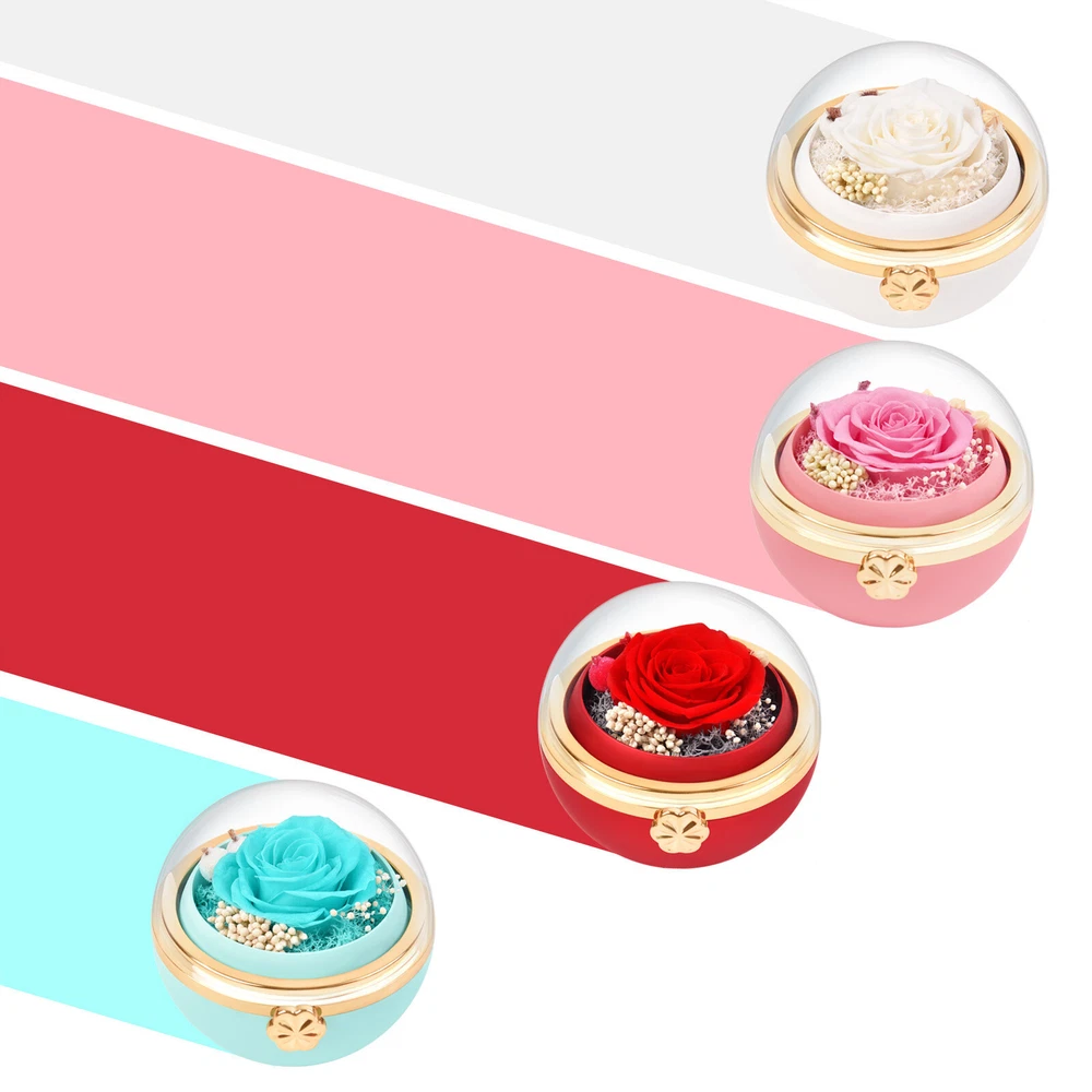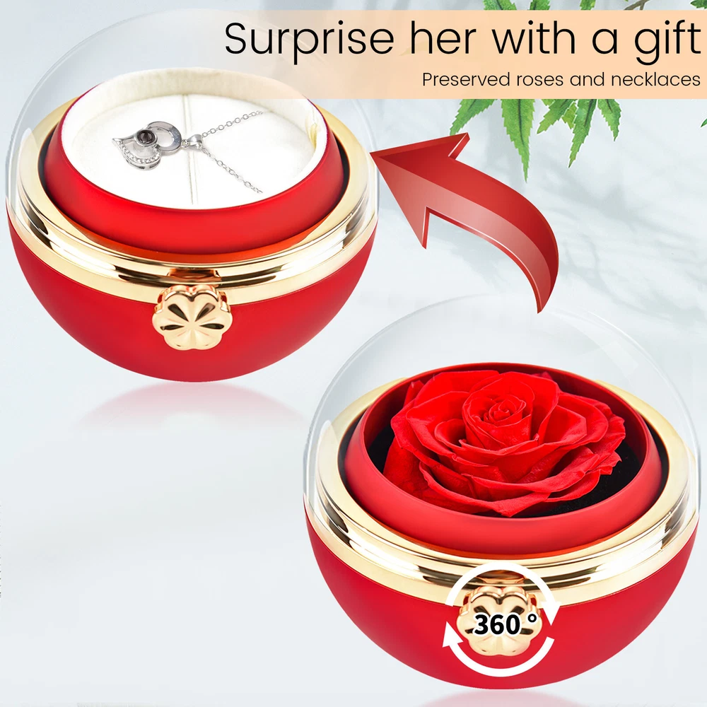 Preserved Flower Jewelry Box Rotating Rose Ring Necklace Valentine's Day Gifts