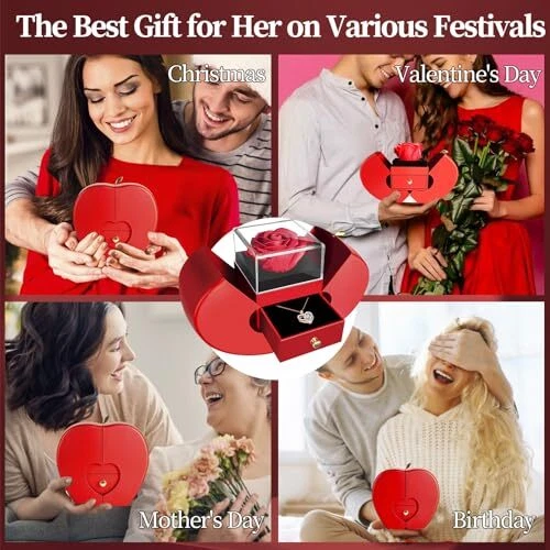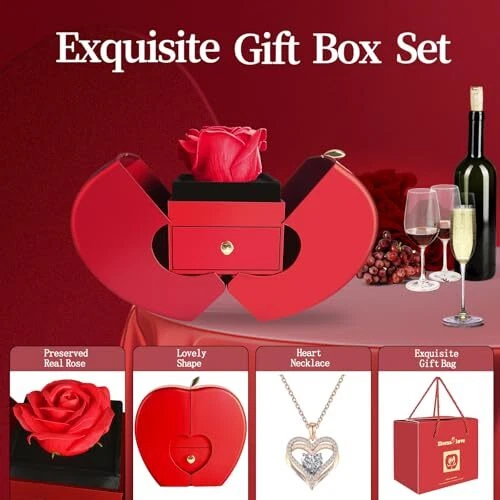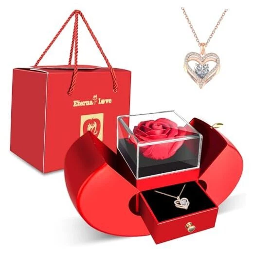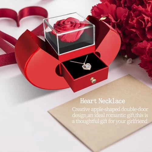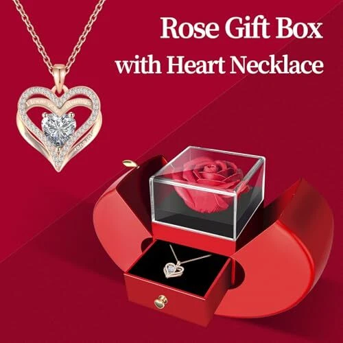 Return Policy Fast Delivery Trusted seller Preserved Flower Red Rose with Heart Necklace, Gift for Mom, Girlfriend, Women, Wife, Grandma on Christmas, Valentine's Day, Mother's Day, Birthday, Anniversary, Thanksgiving Product Description 【Romantic Gift to The Loved One】 The Love heart necklace comes with an exquisite gift box, making it perfect for any occasions such as birthdays, anniversaries, Valentine's Day, Mother's Day, Christmas, New Year, Thanksgiving, International Women's Day, weddings, engagements, and more. It is an ideal gift for your wife, girlfriend, mother, daughter, grandmother, or anyone special in your life. 【18K Rose Gold Plated Necklace for Women】The heart necklace is made to resist oxidation and tarnish and decorated with colorful AAAAA+ Cubic Zirconia crystals, which will keep its color for years. The chain length is 15.7in+ 2in(Adjustable), works on practically anyone. 【Unique Design and Eternal Love】The gift box with a red rose and Lovely shape, a Heart necklace in hidden inside bottom of the box. The heart necklace with the words "I love you always and forever" symbolizes your forever love, and the preserved red roses means eternal love for the special women in your life. 【Preserved Eternal Rose】The preserved red roses are made from real fresh roses. Through unique technology, our roses can maintain their floral appearance for 3-5 years, no pollen, no allergies, and easy to manage. 【What You Get】The exquisite gift box includes 1 x Heart Necklace, 1 x Gift Box, 1 x Preserved Eternal Rose, 1 x Gift Package, Friendly Service. If you have any questions, please feel free to contact us, we will do our best for you. Shipping Returns Payment Shipping Shipping is FREE to all addresses other than APO/PO boxes in the lower 48 states. All our stock ships from US-based warehouses. Shipped via USPS or UPS (depending on location and package weight) Unless stated otherwise, all orders will ship within 24-72 hours of your payment being processed. Check our feedback to see the great reviews of FAST shipping we offer. Returns Seller does not accept returns Payment We currently accept payment via eBay managed payments only. Once payment is cleared, we will dispatch your shipment within 1-3 business days. Please refer to the "Shipping" tab for more information regarding shipping speed to your destination.