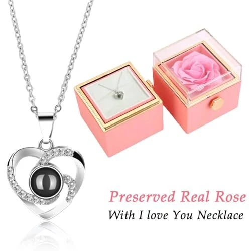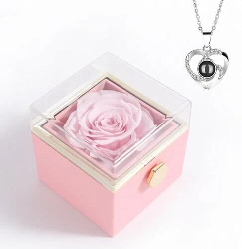 Return Policy Fast Delivery Trusted seller Preserved Flowers with Necklace Romantic Rose in Gift Box for Women Christmas Her Sister Birthday for Mom Wife Daughter and Special Occasions Pink Product Description THE PERFECT GIFT FOR ANY WOMAN – Whether it’s for your mom, wife, daughter, or best friend, this preserved rose and elegant "I Love You" necklace make the perfect gifts for women for any occasion. ETERNAL BEAUTY THAT LASTS – Our preserved flower never wilts or fades, symbolizing everlasting love. Displayed in a luxurious, peach-skin texture box, this gift is as timeless as your feelings. A SURPRISE LIKE NO OTHER – Turn the handle and reveal a stunning heart-shaped necklace with "I Love You" in 100 languages. A touching surprise d to make her smile! ADD TO CART NOW. ELEGANT PACKAGING INCLUDED – Ready to gift! This rose comes beautifully packed with a premium acrylic cover, a lovely gift bag, and a special message card. No need for extra wrapping! A TREASURED MEMORY – This preserved rose is more than just a gift. It's a keepsake, a lasting memory of your love, perfectly suited for birthdays, anniversaries, or Mother's Day. Shipping Returns Payment Shipping Shipping is FREE to all addresses other than APO/PO boxes in the lower 48 states. All our stock ships from US-based warehouses. Shipped via USPS or UPS (depending on location and package weight) Unless stated otherwise, all orders will ship within 24-72 hours of your payment being processed. Check our feedback to see the great reviews of FAST shipping we offer. Returns Seller does not accept returns Payment We currently accept payment via eBay managed payments only. Once payment is cleared, we will dispatch your shipment within 1-3 business days. Please refer to the "Shipping" tab for more information regarding shipping speed to your destination.