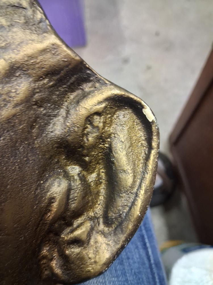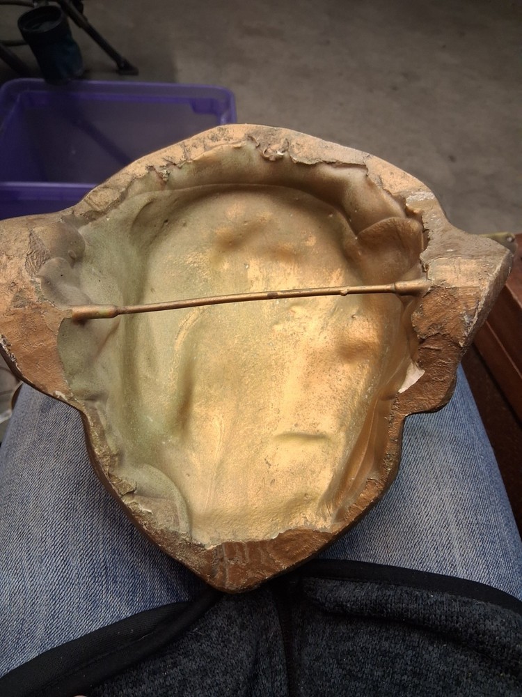 This product is a rare life mask plaster cast mold of President Abraham Lincoln, made in the United States during his term in office from 1861-65. The mold features the likeness of Lincoln, along with the theme of politics and historical memorabilia. Made of plaster, this unique collectible item pays tribute to one of the most iconic figures in American history, Abraham Lincoln, and his First Lady, Mary Todd Lincoln. Gold paint has a few chips ,photos show. Still amazing and affordable historical piece. This piece would be a valuable addition to any collection focusing on US presidents and historical artifacts.