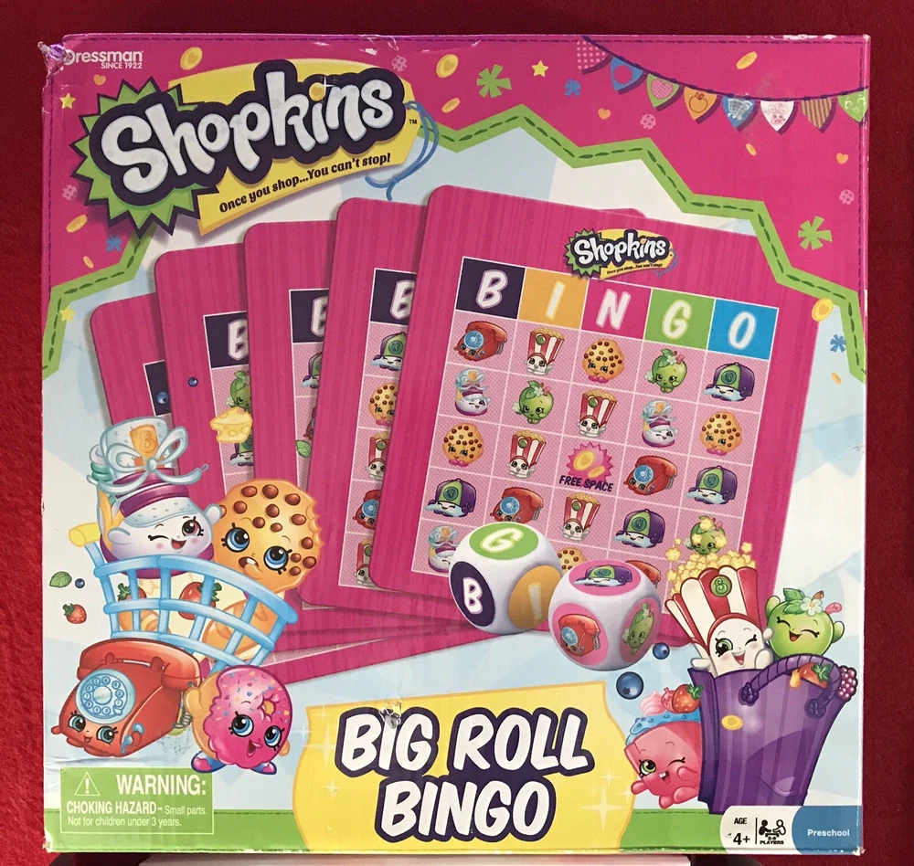 Pressman Shopkins Big Roll Bingo Board Game w/ Extra Set of Cards, Tokens, Dice