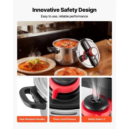 VEVOR Pressure Cooker, 6.3Qt Pressure Cooker Stainless Steel,Pressures Canner with Steaming Rack, Tempered Glass Lid, ThreePressures Settings for Meat, Beans, Rice, Soup, Sauces, Cook up to100 kPa Full Meals, Less Effort Premium Cooking Choice Triple-Layer Heating Quality Build and Comfort Everyday Cooking Upgrade Multiple Sizes Available Capacity: 6Qt/6L ,Item Model Number: 22cm/6L,Pot Depth: 6.4inch/163mm,Can Capacity: 7,Product Dimensions: 14.4 x 9.4 x 9.6/9.3inch (365 x 240 x 245/235mm),Net Weight: 8.2 lbs/3.72 kg,PotDiameter: 8.7 inch/220mm