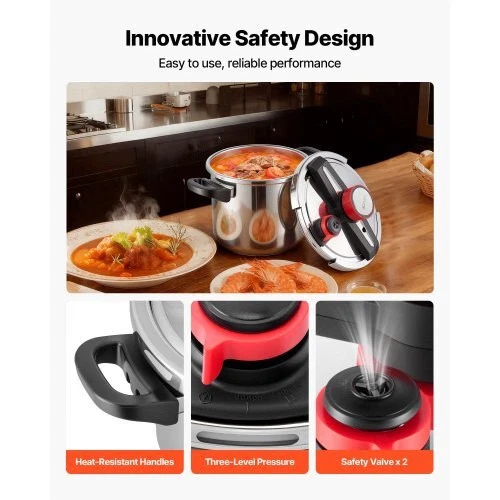 VEVOR Pressure Cooker, 8Qt Pressure Cooker Stainless Steel,Pressures Canner with Steaming Rack, Tempered Glass Lid, ThreePressures Settings for Meat, Beans, Rice, Soup, Sauces, Cook up to100 kPa Full Meals, Less Effort Premium Cooking Choice Triple-Layer Heating Quality Build and Comfort Everyday Cooking Upgrade Multiple Sizes Available Capacity: 8Qt/7L ,Item Model Number: 22cm/7L,Pot Depth: 7.5inch/190mm,Can Capacity: 10,Product Dimensions: 14.4 x 9.4 x10.4/10.0 inch (365 x 240 x 265/255mm),Net Weight: 8.4 lbs/3.87kg,Pot Diameter: 8.6 inch/219mm