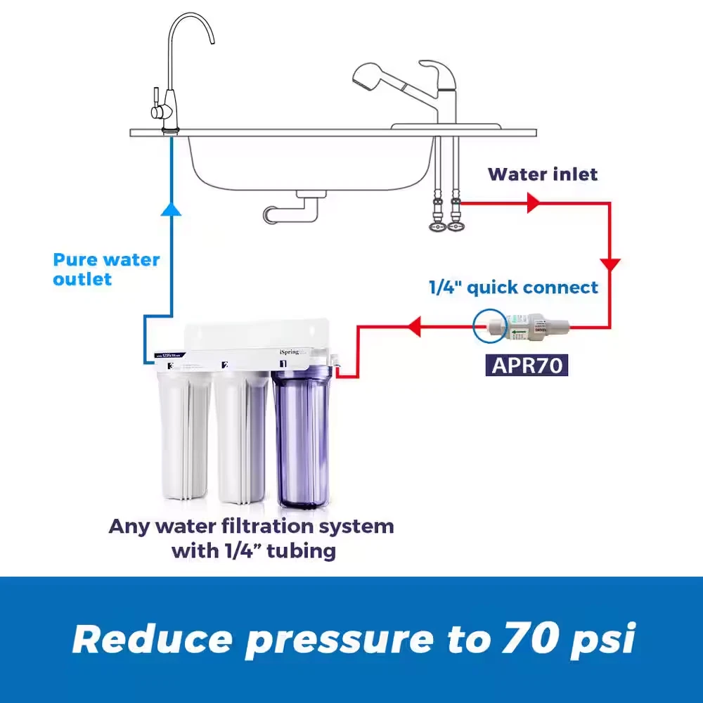 Store New Arrivals Add to Favorite View Feedback Contact Pressure Regulator Filter Protection Valve with 1/4 In. Quick Connect 40 Psi Description Accessory Type Other Brand/Model Compatibility iSpring Pack Size 1 Product Weight (lb) 0.15 lb Returnable 90-Day Manufacturer Warranty none Product Depth (in) 1.25 in Product Height (in) 4 in Product Width (in) 1.25 in Protects equipment by regulating the water pressure 1/4 in. push-in quick connect design for easy setup Ideal for RO systems, ice makers, filters, and other appliances The Pressure Regulator / Protection Valve is to be installed before water applicants such as reverse osmosis systems, water filters, ice makers, coffee machines, chillers, hot water tanks, water coolers, etc, that are sensitive to water pressure. The built-in mechanism limits water pressure to below certain level, such as 70 psi, thus reduces the impact of high water pressure and/or water hammer. The ISPRING Pressure Regulars are compliant with ISPRING's high quality standard to ensure performance and durability. Designed to be used in installations with high feed pressure Used to protect reverse osmosis systems, water filters, ice makers, and etc 1/4 in. push-in quick fittings for easy installation Water flow rate: 4 GPM (15L/min) at 100 psi How Can We Help? Text us now! (678)261-7611 Call Only M-F 9-5 EST / (470)560-0012 Text Only M-F 9-5 EST ABOUT US We offer the best prices around on high quality products. Our E-store includes tools, general home, garden items and more. SHIPPING We are always working hard to ensure your package arrives as soon as possible. Please understand that some factors like weather, high postal traffic, and the performance of shipping companies are outside of our control. We offer free shipping to the lower 48 states and ship within 4 business days of payment, usually sooner. We do not accept P.O. Boxes. Please provide a physical address. RETURNS We offer a 30-Day Return Policy on items which you are not completely satisfied with. You have the option for a full-refund or an exchange of the item. No returns are available on items shipped outside of the USA. PAYMENT We accept PayPal. CONTACT US This page content is yet to come Please ad us to your favorite seller and visit again later Thank You CUSTOMER SATISFACTION We try our very best to make sure every customer is completely satisfied. If there's a problem, message us! We're happy to help. WE ACCEPT Copyright © 2017 AutoDs. | All Rights Reserved