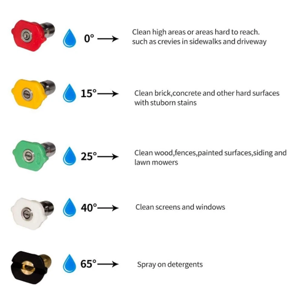 NOT for water hose or garden hose. Package include: handle, 15 inch , 16 inch extension wand, 5 nozzles, M22 14mm female to M22 15mm male connector, M22 14mm female to 1/4 inch quick connector and 5 O-rings Attention: This product is only suitable for high-pressure washers and high-pressure water hose, NOT FOR WATER HOSE or GARDEN HOSE. There is a safety trigger lock in the place of the to prevent accident If the hose connector is M22 with an inner diameter of 14 mm, connect directly. If the hose connector is M22 with an inner diameter of 15 mm, use the brass connector to connect the and the hose, otherwise it may cause Leakage. high pressure washer is available in 3 lengths: 40", 25", and 9". It can be connected to any product with 1/4 quick connector, such as: nozzle, rotating nozzle, undercarrier cleaner, surface cleaner, extension wand ect. NOT for water hose or garden hose. This product contains 5 nozzles, the nozzles have different angles (0, 15, 25, 40, 65), allowing you to choose nozzles with different angles according to your needs