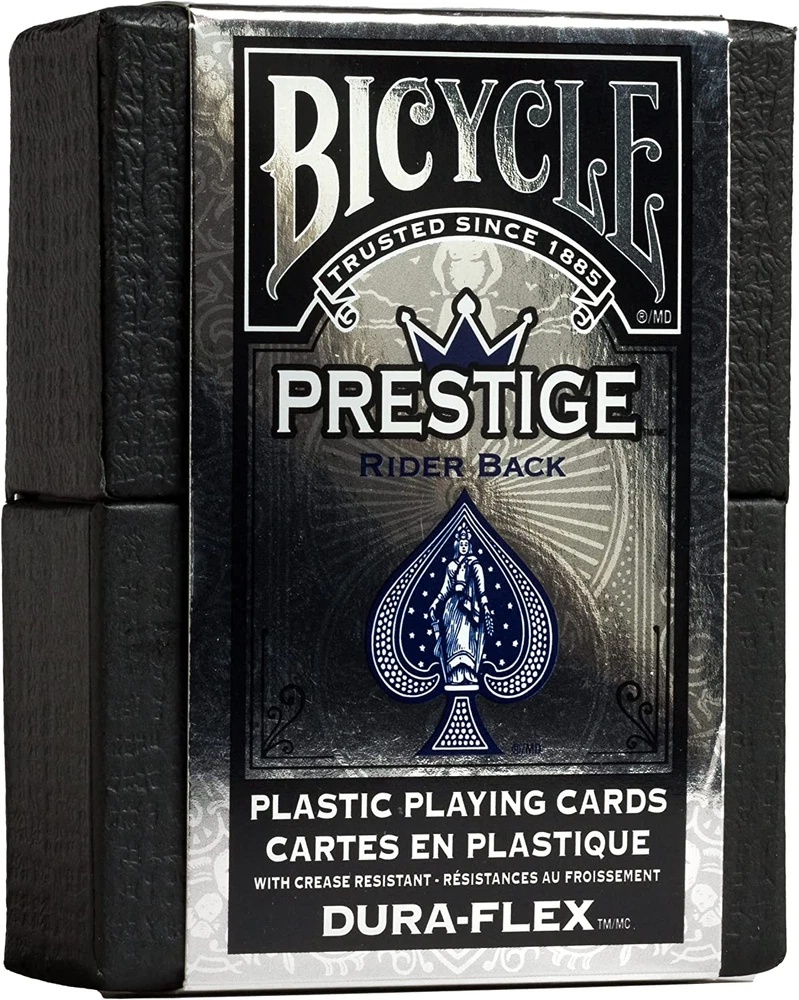WATERPROOF PLAYING CARDS: Discover Bicycle Prestige Plastic Playing Cards, adorned with the timeless, classic Rider Back design. These durable, waterproof cards provide unparalleled longevity for countless hours of gameplay PLASTIC PLAYING CARDS: Elevate your games with these 100% plastic and waterproof playing cards. Emulating the feel of paper cards, these cards are designed with innovation and resilience, ensuring peak performance and durability in any playing environment TRUSTED BICYCLE QUALITY: Experience the feel of perfection in every game with these high quality playing cards. Each card is engineered with an Air Cushion Finish, providing an easy handling and shuffling experience VERSATILE GAMING: These cards open the door to countless games of skill and chance. From poker and blackjack to euchre, pinochle, rummy, and canasta. Unleash your inner gamer with this versatile deck of playing cards DELUXE PACKAGING: Our Prestige Playing Cards don't just promise an exceptional game experience, they also make a bold statement. Each waterproof deck of cards comes in a premium paper case, embodying the elegance that suits the prestige of your game nights 100-Percent plastic card with a paper-like feel Perfect for a neighborhood game or a professional tournament Air cushioned feel and easy to shuffle Colors Available: Blue or Red Air cushioned feel and easy to shuffle Discover the world of premium card playing with our Bicycle Prestige Plastic Playing Cards. Crafted from high-quality plastic, they strike the perfect balance between durability and a pleasing paper-like touch. Unlike ordinary cards, these are waterproof cards, ensuring longevity and consistent performance. Engineered with an Air Cushion Finish, the cards provide a seamless shuffle, providing for easy handling seamless shuffling. These elegant cards come in a high-quality paper case that complements their excellent craftsmanship, making them a perfect choice for those who desire a sophisticated card-playing experience.