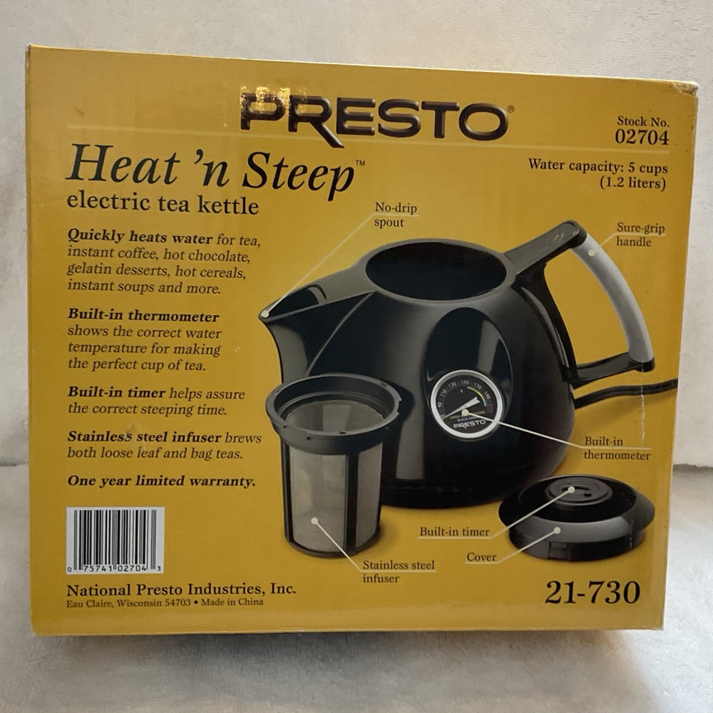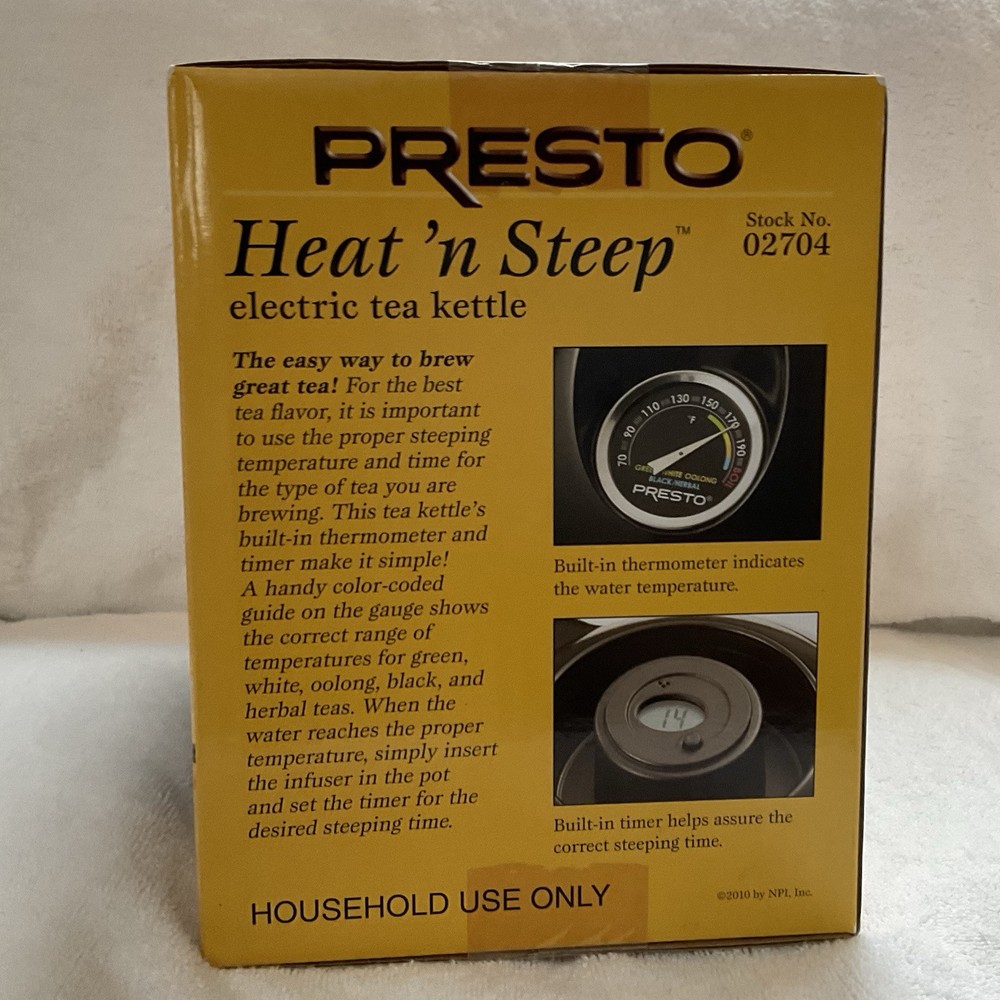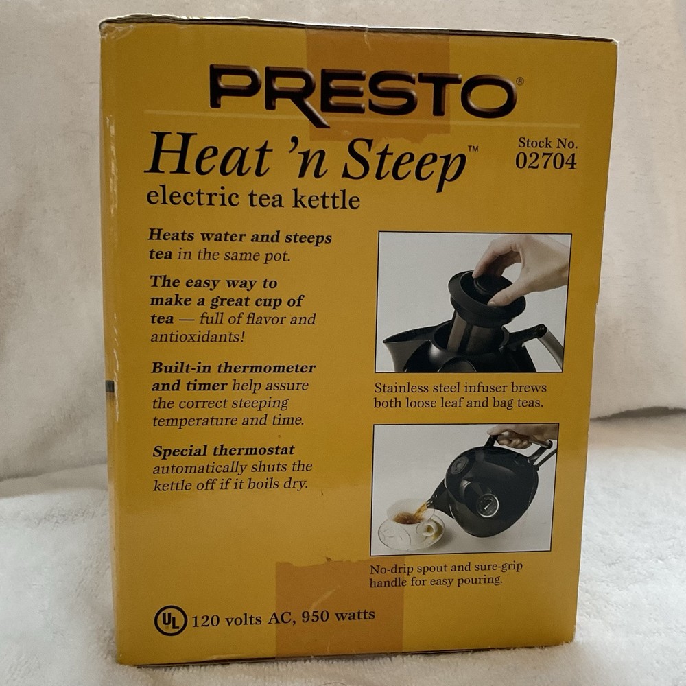 Presto Heat n Steep Electric Tea Kettle New Sealed Box Model 02704
