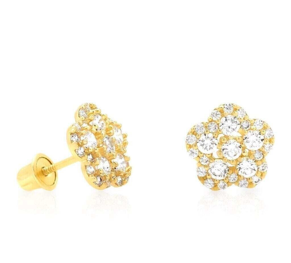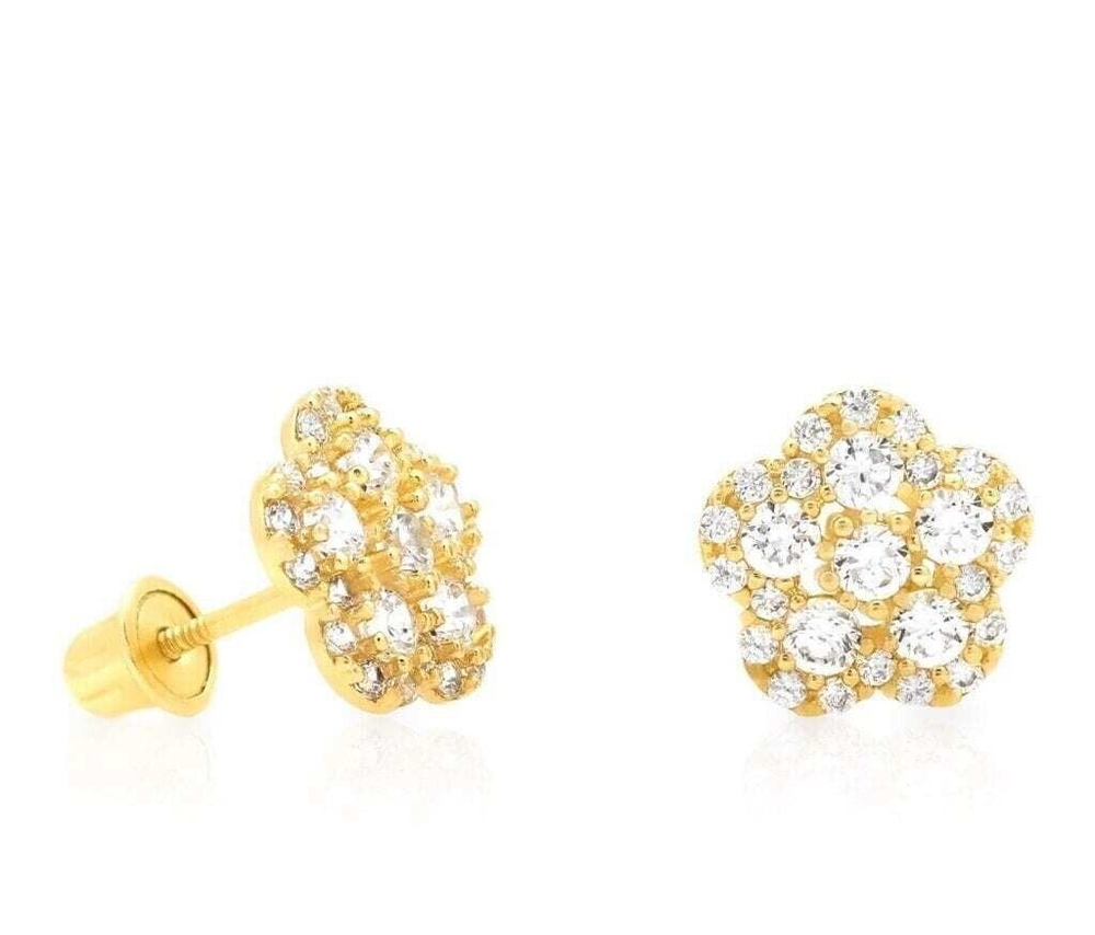 Color: Yellow Main Stone Color: White Seller Warranty: Yes Metal Purity: 925 Style: Stud Type: Earrings Country of Origin: United States Signed: No Antique: No Main Stone Shape: Round Main Stone Creation: Simulated Material: Stone, Metal gtin13: Does Not Apply Seller Notes: ““Freshly made on order with quality and buyer satisfaction. No old stocks.”” Closure: Push Back MPN: NA Theme: Beauty Brand: sp_jewels UPC: Does Not Apply Setting Style: Prong Customized: Yes Era: Undated Main Stone Treatment: Not Enhanced Secondary Stone: NA Base Metal: Yellow Gold Plated Shape: Flower Number of Gemstones: 00 Metal: Sterling Silver Wholesale: Yes Ear Area: Lobe Vintage: No Occasion: Anniversary, Birthday, Christening, Christmas, Confirmation/Communion, Engagement, Graduation, Mother's Day, Valentine's Day, Wedding Cut Grade: Excellent Handmade: Yes Personalize: No Country/Region of Manufacture: India Features: Engraved Main Stone: Simulated Diamond