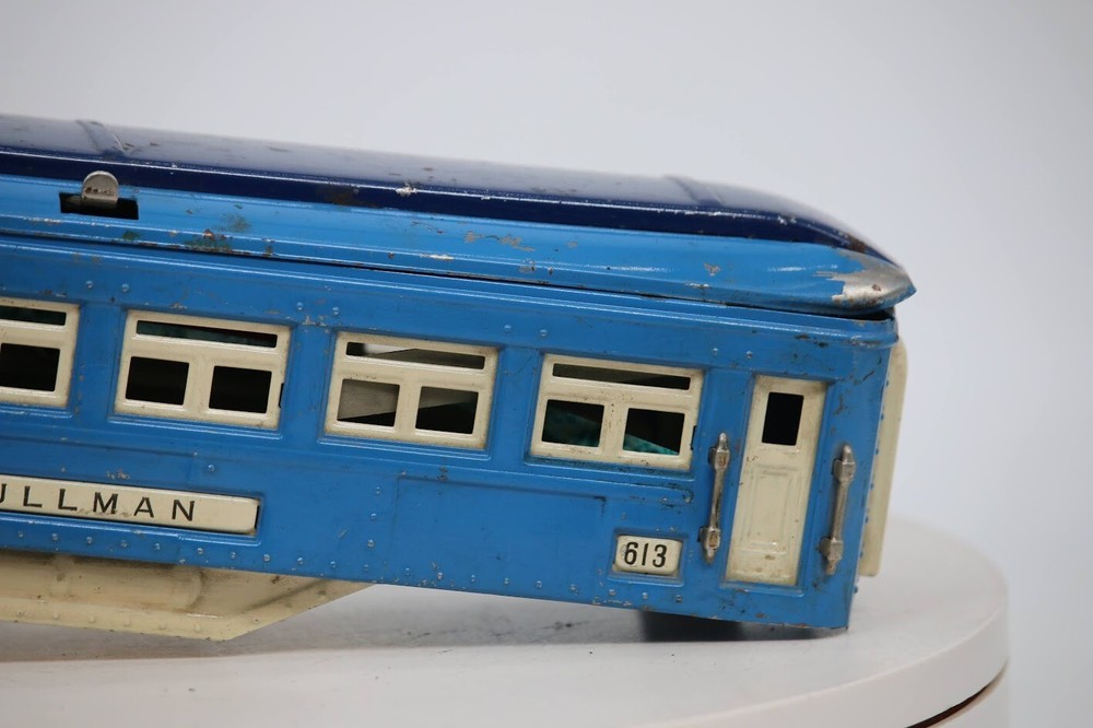 Lionel Prewar O Gauge 1:48 Scale 613 Blue Comet Pullman Car C-7 See Description SKU#009123 Please Read Before Purchasing We strive to provide a clear and pleasant buying experience for all our customers. Below is important information regarding item descriptions, shipping, returns, and feedback. ITEM DESCRIPTIONS Items are described to the best of our ability and accompanied by detailed photos. Please review them carefully before purchasing. Only items pictured and described are included in the sale. For items sold "AS-IS," functionality may be unknown, and they are priced accordingly. Refunds for "AS-IS" items will only include the purchase price, not shipping costs. If you have additional questions or require further details, feel free to ask before bidding or buying. SHIPPING INFORMATION Combined Shipping: If purchasing multiple items, please request an invoice before payment to ensure accurate combined shipping costs. Items will be shipped within 24 hours of payment receipt (excluding weekends and holidays). Payments received after noon EST on Fridays will ship the following business day. International shipping is available—please contact us with any questions. We carefully package items, but in the rare event of damage during transit, please contact us to resolve the issue. RETURNS We abide by eBay's Money Back Guarantee. Items can be returned within 30 days under the following conditions: Defective/Damaged Items: A full refund will be issued after the item is returned and inspected. "AS-IS" or Buyer’s Change of Mind: Refunds will include the purchase price only, with the buyer responsible for shipping costs. Please contact us before initiating a return request to discuss solutions. IMPORTANT NOTES Items may show signs of long-term storage, including blemishes, dust, or minor wear. Some components, such as couplers, brake wheels, steps, or ladders, may be missing or damaged. Items may require cleaning for optimal appearance. Photos are taken under lighting that may slightly affect color or hue. Feel free to request additional photos in natural lighting or a more detailed description if needed. FEEDBACK We value your satisfaction and appreciate positive feedback. If there are any concerns, please contact us before leaving neutral or negative feedback—we’ll work to resolve the issue promptly. Thank you for your interest in this item! We look forward to a smooth and satisfying transaction.