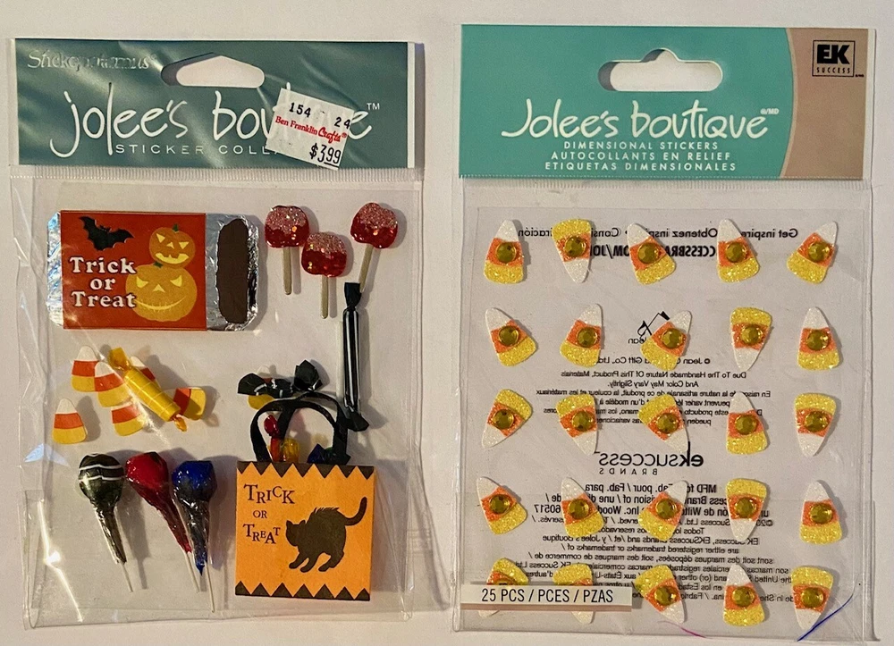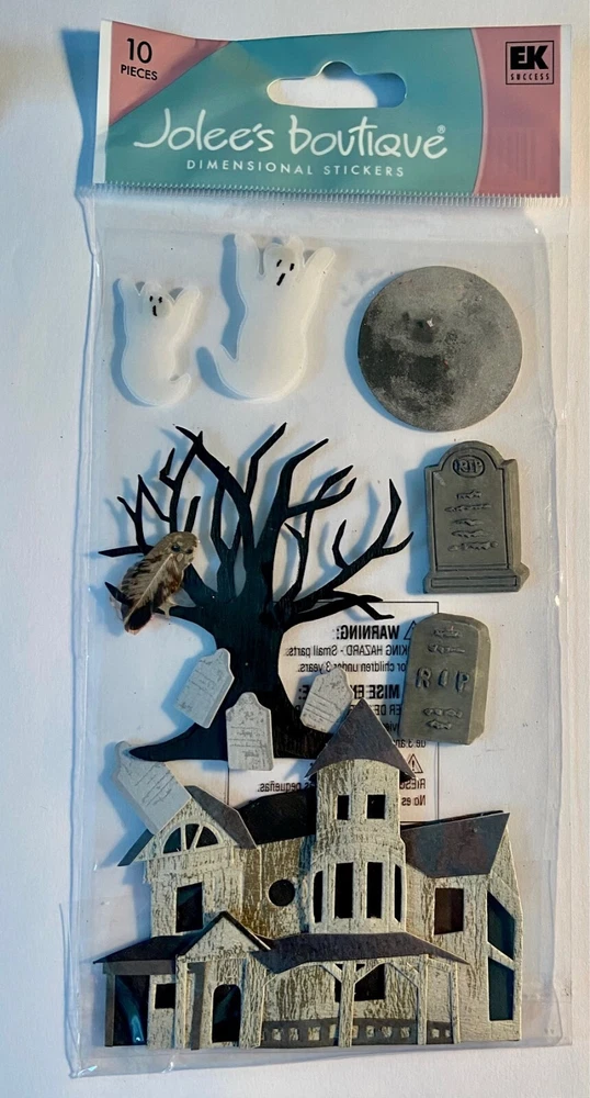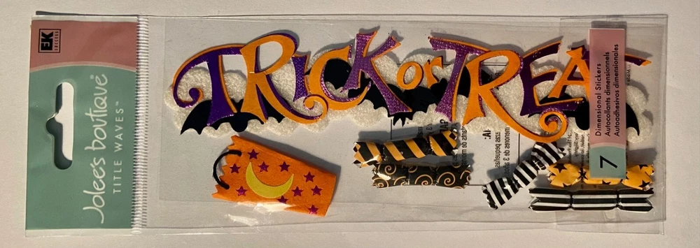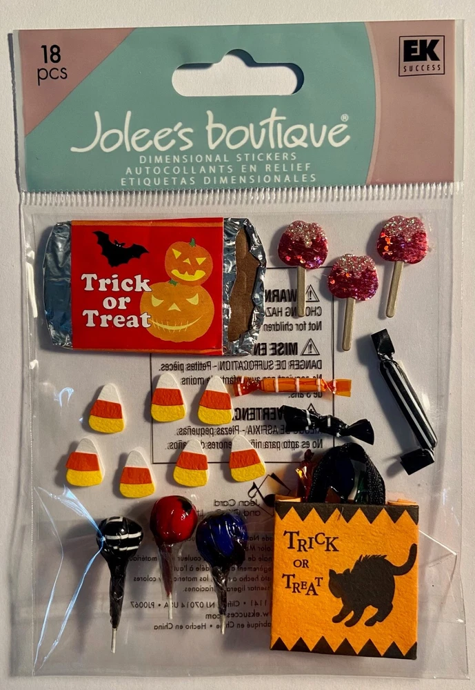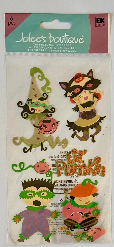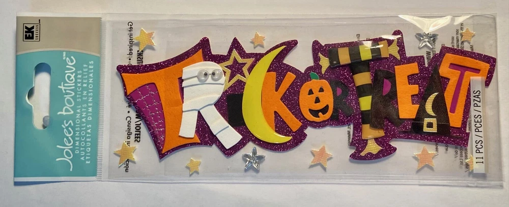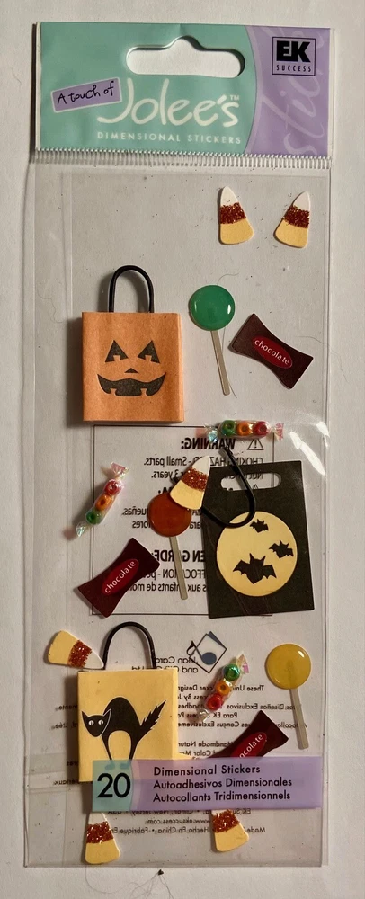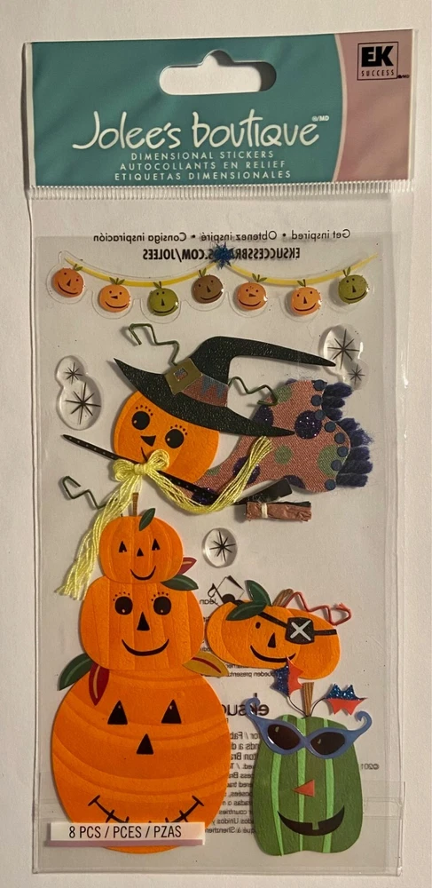 Get ready for Halloween with Jolee's Boutique scrapbooking stickers! Choose from a variety of spooky designs to add to your scrapbook or paper craft projects. All stickers are dimensional and feature vibrant multi-colors that will add a festive touch to any project. These stickers are perfect for scrapbooking, card making, or any other paper crafts. They are made by Jolee's Boutique, a trusted brand in the crafting industry. Whether you're a seasoned scrapbooker or just starting out, these stickers are sure to add a touch of Halloween spirit to your projects.