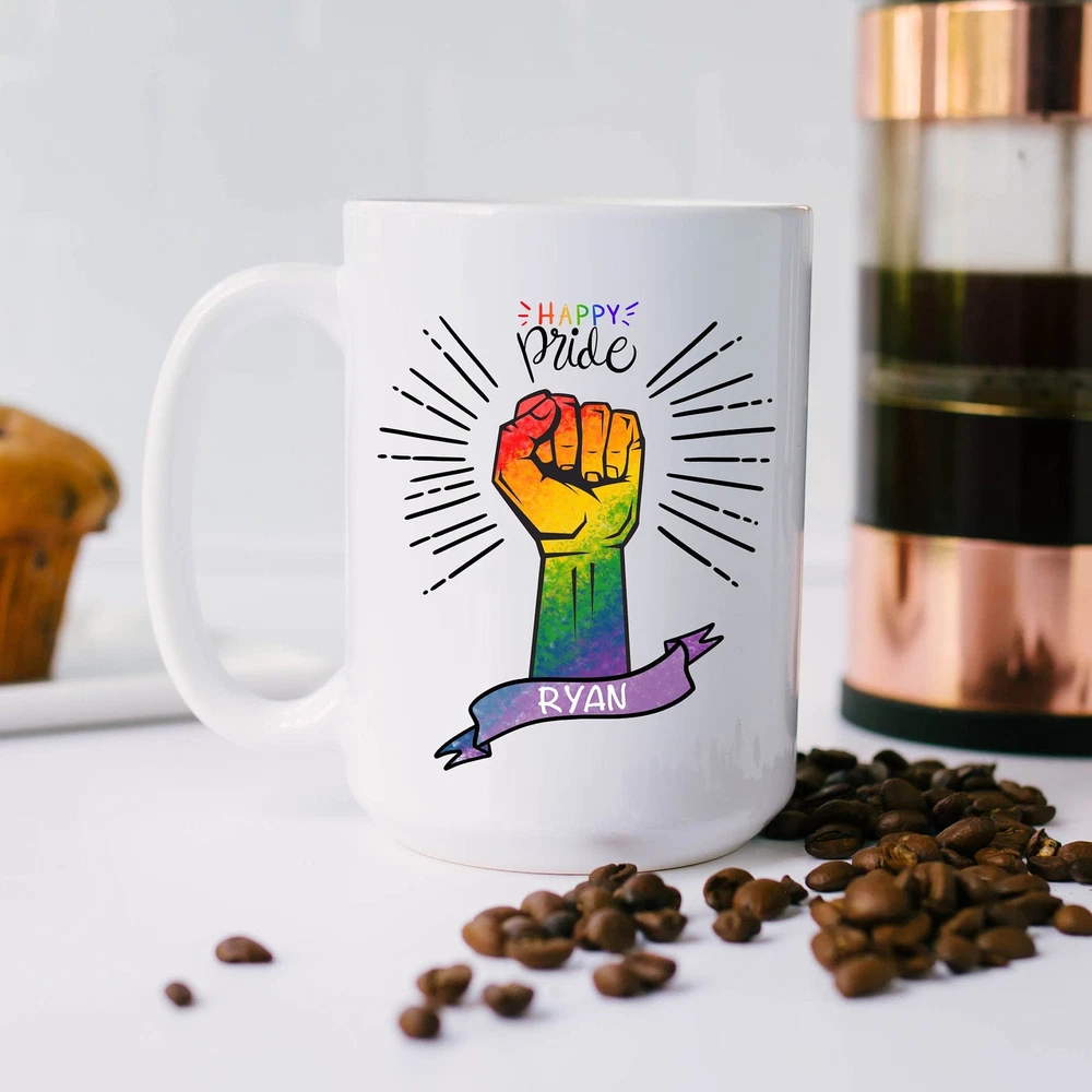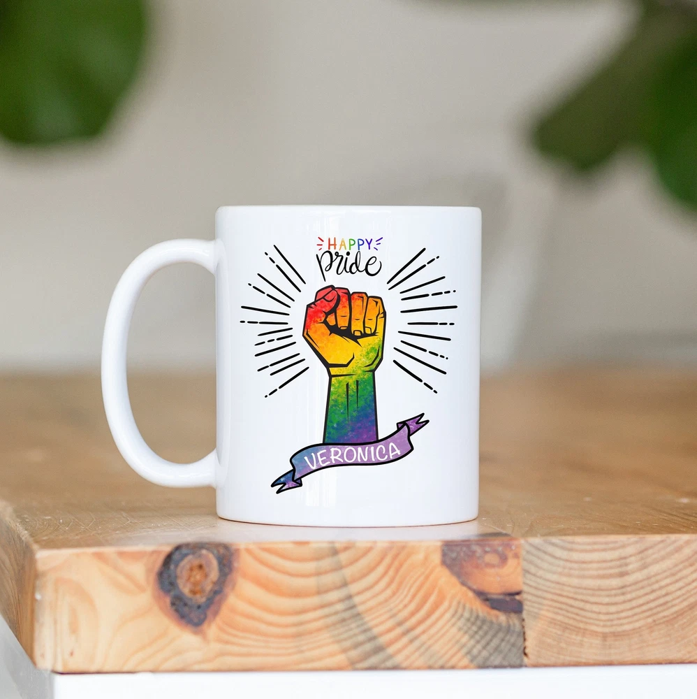 Pride Mug Gay Mug Lgbt Mug Gay Pride Gift Personalized Mug Custom Mug Proud Mug Product Details.. This high quality 11oz. ceramic white mug has a premium hard coat that provides crisp and vibrant color reproduction sure to last for years. Perfect for all hot & cold beverages. The highest quality printing possible is used. It will never fade no matter how many times you wash it. Material: 100% Ceramic. Print both sides. Dishwasher and Microwave Safe. High Gloss + Premium White Finish. Printed in the U.S.A. Personalized & Custom. We support personalized and custom mug to add custom, when placing an order, you can add notes to the "order note" in shipping address section. Also you can contact us directly via message. Shipping Info. Ready to ship in 1 to 2 business days, All products are made-to-order and proudly printed in the United States. Shipped by USPS and DHL, You will receive your order in 5-7 days. Replace & Refund. All products are defective during shipping broken, chipped will be replaced free of charge. You are not satisfied with the product, we will refund 100% money to you. If any other issues arise, please do not hesitate to message, we would be more than happy to assist you.