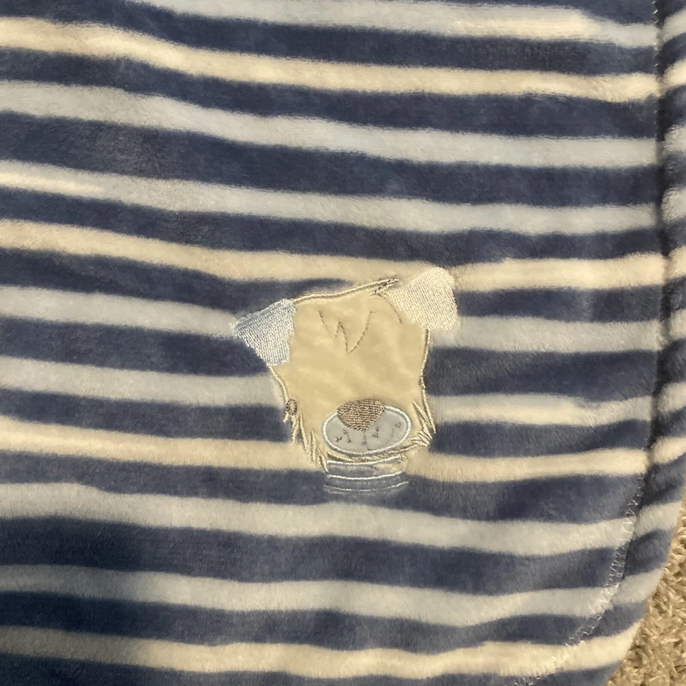 Keep your little boy cozy and comfortable with this Primark baby blue stripped blanket. Measuring 36in x 27in, it's the perfect size to fit a crib or pram. Made from fleece material, it's easy to care for and will keep your baby warm during chilly nights. The blanket features a stylish blue color and is perfect for boys. This multi-purpose blanket is a must-have for any parent. It's not only functional, but also stylish and comfortable. Whether you're looking to snuggle up with your baby or use it as an extra layer of warmth, this blanket is perfect for you.