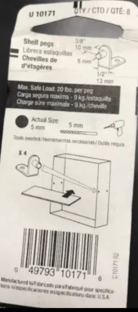 Prime-line shelf pegs from broken packages. Pegs are 3/8” long at 5mm diameter. Brackets are 1/2” wide. NEW Qty-30 Free Same Day Shipping!
