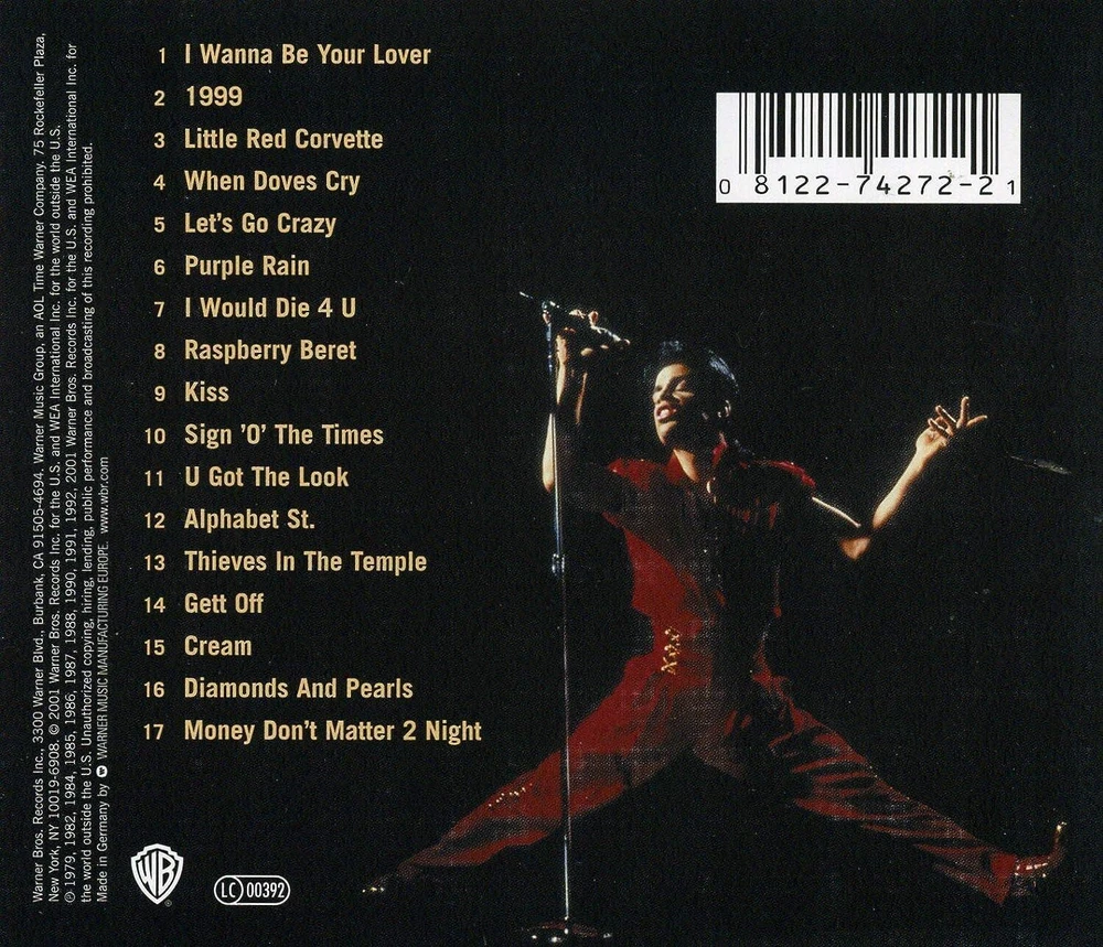 Further Details Title: The Very Best of Prince Condition: New Artist: Prince Format: CD Edition: Album No Of Discs: 1 Run Time: 73.10 Record Label: Rhino UK Language: English Release Date: 11/22/2010 Producer: Prince Genre: Rock Style: Rock EAN: 0081227427221 MPN: 8122742722 Release Year: 2010 Tracks: 1: I Wanna Be Your Lover 2: 1999 3: Little Red Corvette 4: When Doves Cry 5: Let's Go Crazy 6: Purple Rain 7: I Would Die 4 U 8: Raspberry Beret 9: Kiss 10: Sign 'O' the Times 11: U Got the Look 12: Alphabet St. 13: Thieves in the Temple 14: Gett Off 15: Cream 16: Diamonds and Pearls 17: Money Don't Matter 2 Night Missing Information? Please contact us if any details are missing and where possible we will add the information to our listing.