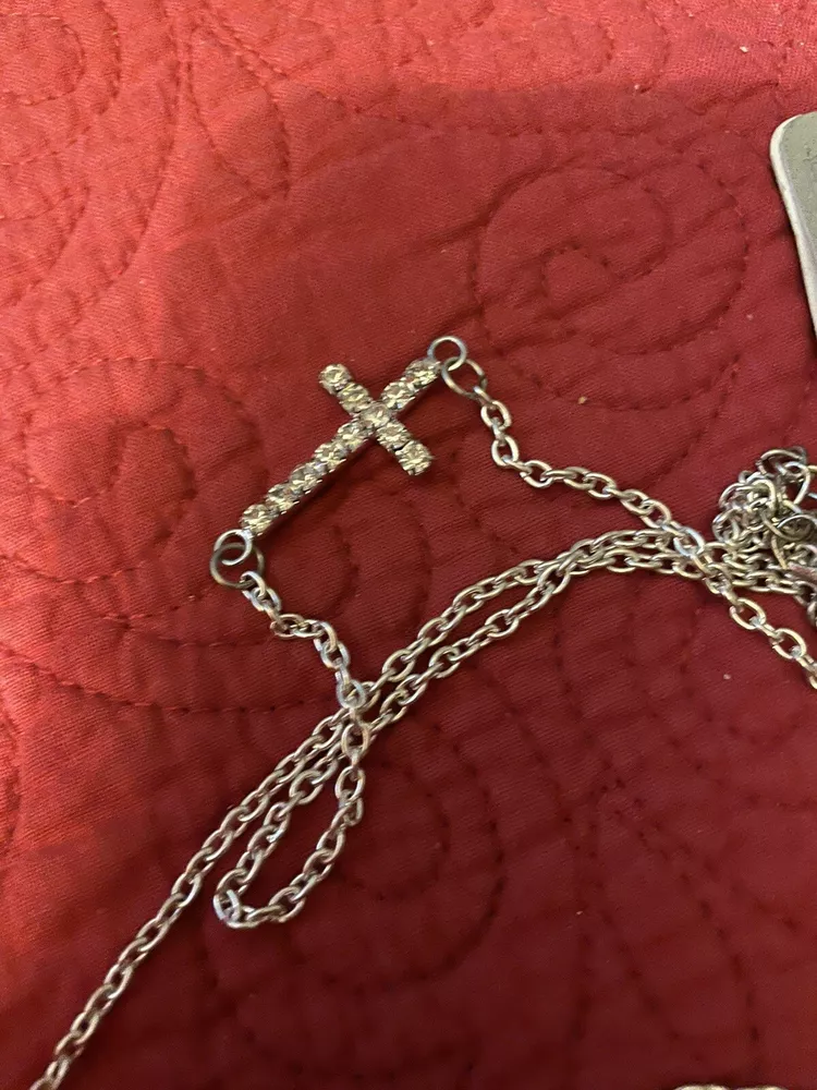HomePrincess Accessories Rhinestone Cross Necklace And Earrings With Mustache NWT