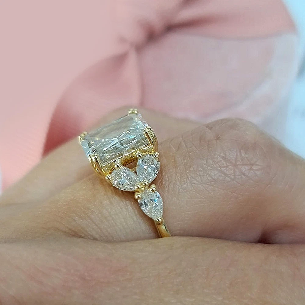 $ 1053.8118k White Gold Elegant Diamond Ring Emerald 2 Carat IGI Lab Created E F VVS2