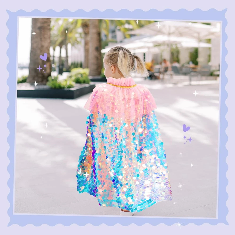 Charming dress up clothes for little girls with vibrant colors builds self-confidence for toddler girls. Covered with sparkling sequins, the little girl will transformed into the most glittering princess after wearing it. Featured dynamic vibrant colors & dazzling appearance, design for princess dress up for 3 year old girls and up. Sweet 3 year old girl gifts and girl toys age 3-8 for toddler princess dress up.