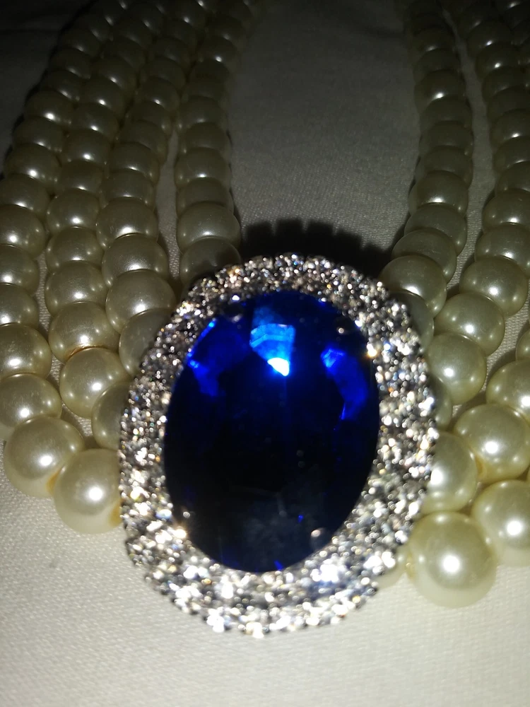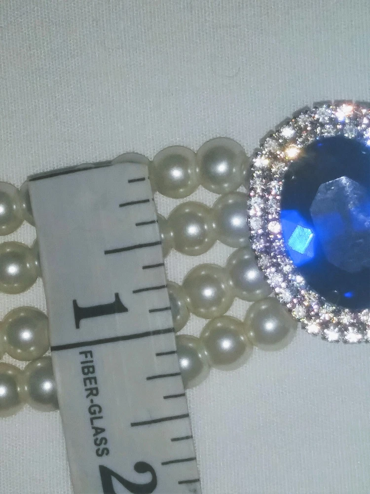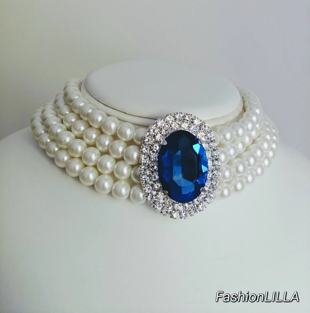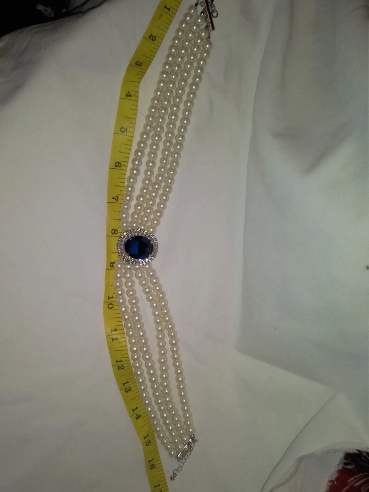 Add a touch of royal elegance to your jewelry collection with this beautiful Princess Kate Diana replica choker necklace. The pendant is a round floating keepsake filled with stunning blue simulated gemstones 4 Strands of pearls, surrounded by sparkling white and colorless cubic zirconia. The necklace is made of high-quality silver alloy and measures 16 inches in length, perfect for any formal event or everyday wear. This breathtaking piece of jewelry is crafted with a prong setting style and features a princess-shaped main stone. choker necklace is a true beauty, and it will boost your confidence and make you feel like a princess whenever you wear it. Don't miss out on this amazing accessory, perfect for weddings, proms, or any special occasion!