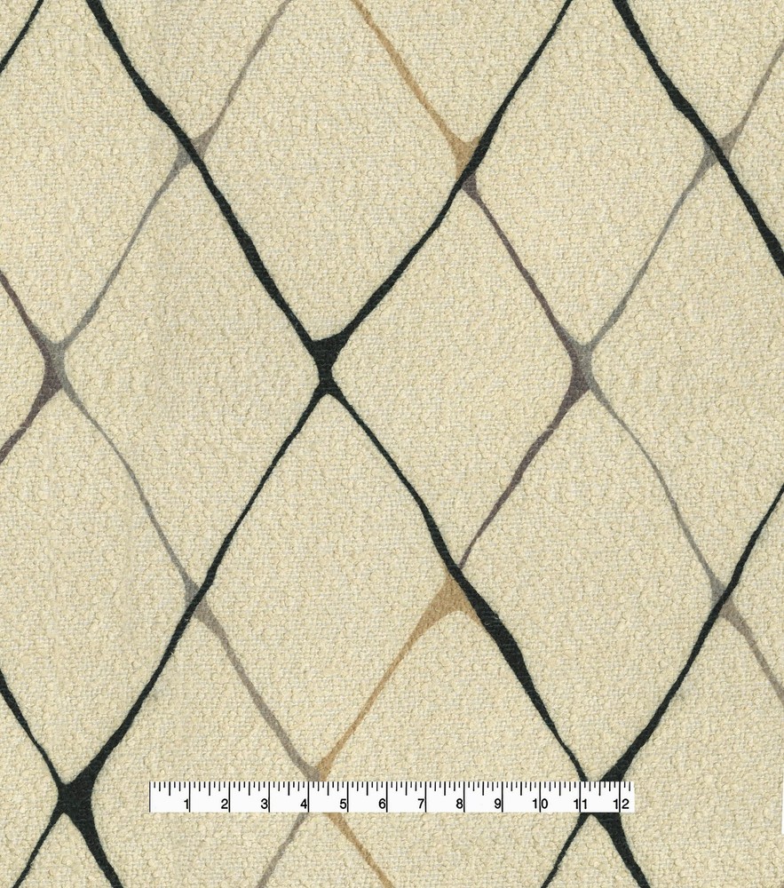 This eye-catching home decor fabric is heavyweight and features a gorgeous visual interest. Use for window treatments, toss pillows, and even upholstery fabrics that won't see a lot of wear. FEATURES: This eye-catching, heavyweight home decor fabric features a beautiful visual interest. Perfect use for heavier window treatments (draperies, valances, swags), toss pillows, and upholstery projects. SIZING: This fabric is 54'' wide and sold by the yard and cut to order. For example, order of 1 yard (Qty=1) is 54" x 36''. Order of 3 yards (Qty=3) is 54'' x 108''. MATERIAL: Base- 100% polyester; Back- 100% recycled polyester woven bonded back CARE: Dry clean only DETAILS: Straight match; vertical repeat: 22"; horizontal repeat: 13.5"; Wyzenbeek abrasion results: 51,000