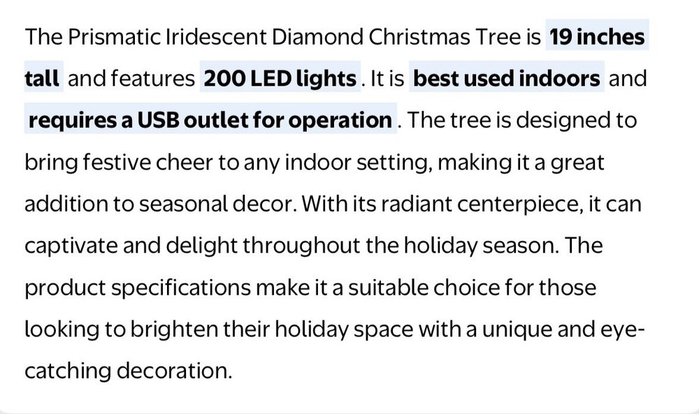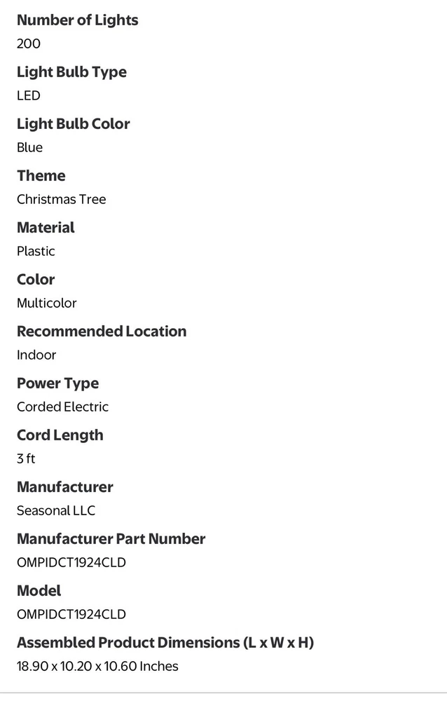 Color: Multicolor Type: Iridescent Product: Christmas Tree Material: Plastic Brand: Seasonal LLC Occasion: Christmas Artificial/Fresh: Artificial Country/Region of Manufacture: China Personalize: No