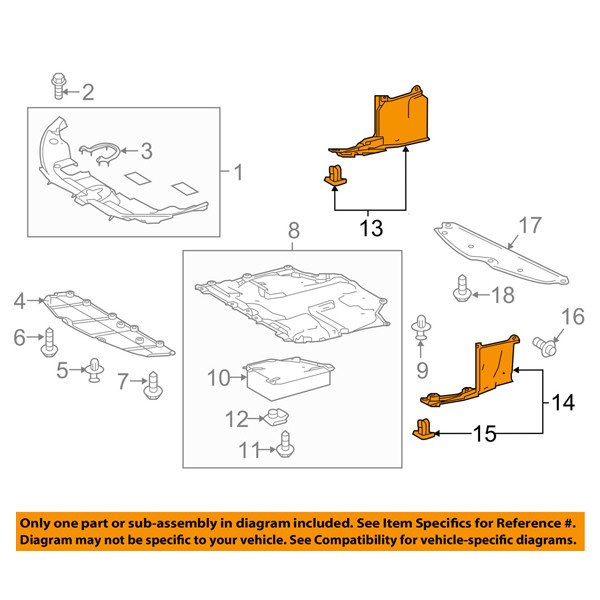 BRAND NEW SET OF TWO FRONT ENGINE SPLASH SHIELD UNDER CAR COVERS! High Quality - Certified - Replacement Aftermarket - Made Of Durable Components This item is a Non-Original part Compatible with the following years and models: 2016 2017 2018 Toyota Prius 2017 2018 Toyota Prius Prime (For Models with Production Date Up To June 2018) Trim: Advanced, Base, Plus, Premium, Technology, One, Two, Two Eco, Three, Three Touring, Four, Four Touring Note: 1.8 Liter Electric/Gas Engine - Hatchback 4-Door Note: Vacuum Formed - Plastic Placement: Front (Set of 2 Piece) - Includes both Left Driver & Right Passenger Side
