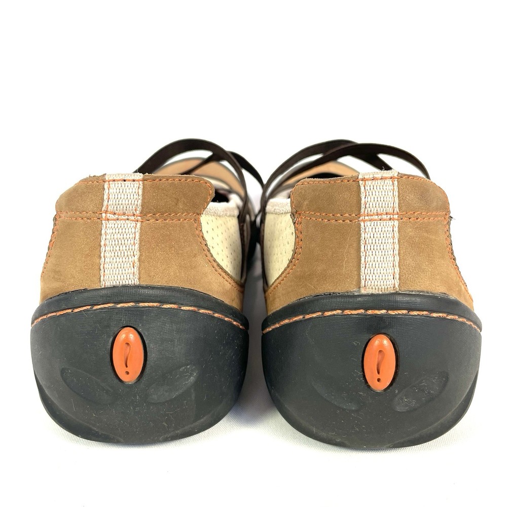 CLARKS Tan Leather Strappy Flat Loafers for Women Size 9.5 Comfort Casual