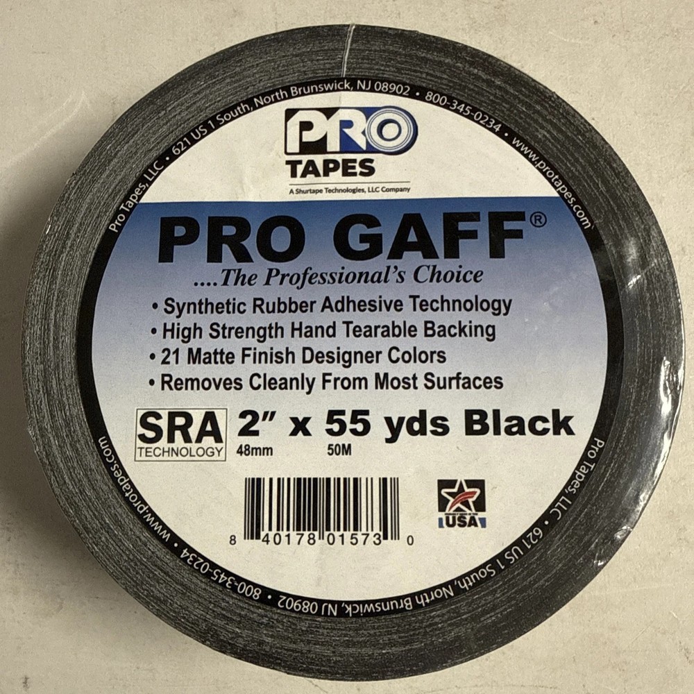 Pro Gaff Gaffer Tape 2” x 55 Yards – Black Ensure professional-quality results with Pro Gaff Gaffer Tape . This durable black cloth tape is designed for stage, film, photography, and general-purpose use. Its strong adhesion and matte finish make it perfect for securing cables, marking floors, and temporary repairs without leaving residue. Features: High-quality gaffer tape for professional use 2 inches wide, 55 yards long Matte black finish reduces reflection Strong adhesion, residue-free removal Durable cloth construction Benefits: Keeps cables and cords secure and organized Perfect for stage, film, TV, and photography setups Leaves no sticky residue on surfaces Professional matte finish for clean, discreet applications Reliable durability for repeated use Usage: Cut the desired length and apply to clean, dry surfaces. Ideal for cable management, floor marking, and temporary holding tasks. Remove carefully when done; tape leaves no residue.