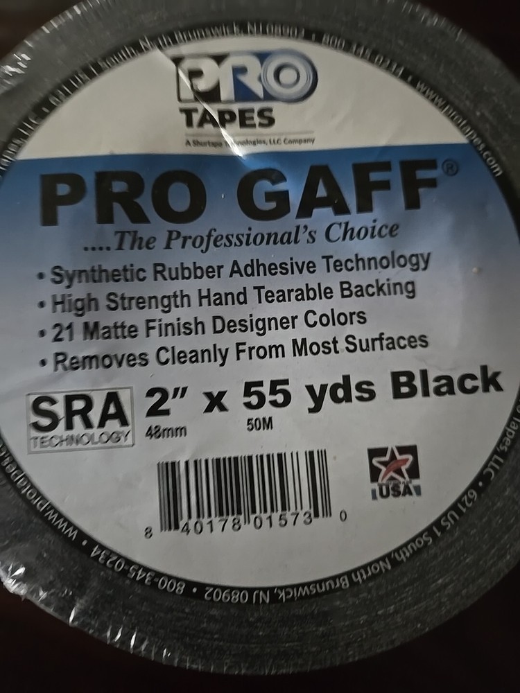 The Pro Gaff Tape by ProTapes is a black gaffers tape designed specifically for use with electrical cords and cables. With a width of 2 inches and a length of 55 yards, this electrical tape offers a reliable solution for securing and organizing cords in various settings. The tape is manufactured using SRA (Soft Rubber Adhesive) technology, ensuring strong adhesion while also being easily removable without leaving residue behind. This product is a versatile option for professionals in the electrical industry or anyone needing a durable and functional tape for cord management.