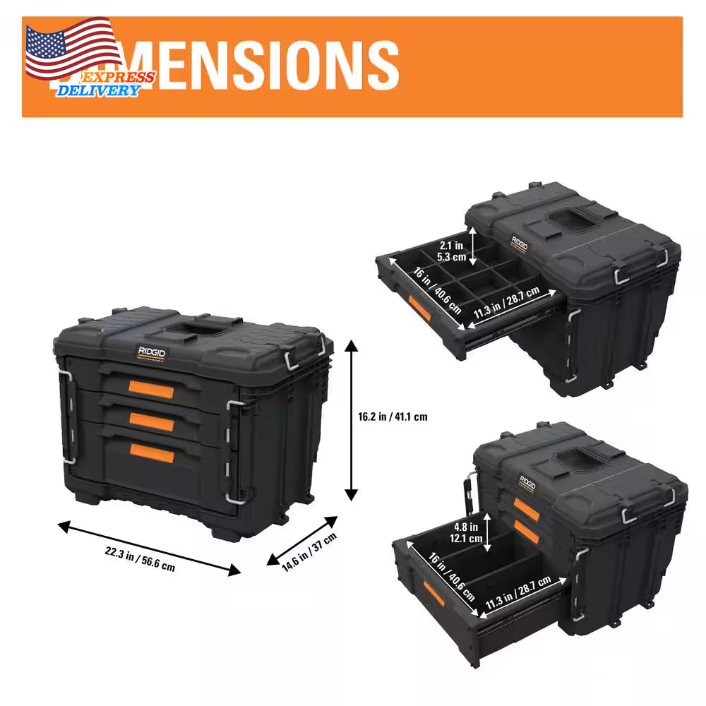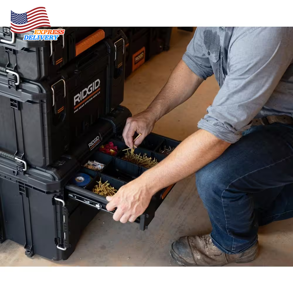 Store New Arrivals Add to Favorite View Feedback Contact Pro Gear System Gen 2.0 14.6 In. W Black Resin XL 3 Drawer Durable Hand Tool Box with Dividers for Internal Organization Description Color Family Black Color/Finish Black Features Lockable,Stackable,Wall Mountable,Weatherproof Holding Capacity (cu in) 5000 cu in Included Accessories Drawer Dividers,Latches,Lid Material Resin Number of Drawers 3 Drawer Product Weight (lb) 23.8 lb Returnable 90-Day Tool Box Type Hand Tool Box Tool Storage Product Type Tool Box Tools Product Type Tool Storage Weight Capacity (lb) 55 lb Maximum Handle Length (in) 3 in Product Depth (in) 22.3 in Product Height (in) 16.2 in Product Width (in) 14.6 in Water resistant 3-drawer tool box for big and small tool storage high-impact resin construction for long-lasting performance Compatible with all RIDGID Pro Gear Tool Storage Systems The RIDGID 22 in. Pro Gear 2.0 XL 3 Drawer is made with high-impact resin for long-lasting performance. This Tool organizer is the most versatile and durable toolbox for any job site or worksites. This unique Drawer 2 plus 1 design offers 2 shallow drawers and 1 deep drawer to store large and small-sized tools with maximum ease and convenience. This RIDGID's Pro Gear 2.0 Tool box is a half footprint connectivity with metal ball bearing drawer slides and padlock eyelet for security. Each drawer is front-lockable for easy access and safe transport. Dividers are included (1 set for shallow drawer and 1 set for deep drawer) allows internal organization and storage of small parts and clear division in the deep drawer, for fast search and organization. The XL drawer toolbox is also compatible with the 2.0 cart for a quick Attach-and-Detach from the 9 in. wheels. You can be mobile and also have the convenience of taking the drawer you need without unmounting the unit. This toolbox allows you to create an organized and functional workspace with its hanging the drawers - Fix- and- Go mechanism The XL drawer can be base unit in the Pro Gear modular mobile system or create a full stack of drawer - top to bottom with unlimited access. The Pro Gear XL Drawer 2 plus 1 is fully compatible with RIDGID's Pro Gear System 2.0 and 1.0 products, customized your storage solutions for easy transportation, organization and more accessibility with XL Drawer 2 plus 1. You have the capability to fully access drawers while mounted, Divider included for optimal tool and parts organization Equipped with durable, hybrid pro-grade latches and improved metal hinged lid Label your storage contents with convenient label nameplate (label not included) Padded handle for comfortable carrying High-impact resin construction for lasting durability Maximum Loading Capacity: 11 lbs Shallow Drawer / 22 lbs Deep Drawer Integrated padlock eyelet to allow for locking (padlock not included) Compatible with RIDGIDTM Pro Gear tool storage systems 2.0 and 1.0 ABOUT US We offer the best prices around on high quality products. Our E-store includes media such as books, movies, music and games while offering electronics, toys, sporting apparel, clothing, tools, general home, garden items and more. SHIPPING We are always working hard to ensure your package arrives as soon as possible. Please understand that some factors like weather, high postal traffic, and the performance of shipping companies are outside of our control. We offer free shipping to the lower 48 states and ship within 2 business days of payment, usually sooner. We do not accept P.O. Boxes. Please provide a physical address. For shipping outside of the continental USA, we only use eBay's Global Shipping Program.The item is shipped to KY and then sent to the rest of the world. International customers are responsible for all duties and taxes. Continue to check out in order to calculate costs for shipping the item to your country. Messages regarding eBay's Global Shipping Program MUST be directed at eBay EXCLUSIVELY. RETURNS We offer a 30-Day Return Policy on items which you are not completely satisfied with. You have the option for a full-refund or an exchange of the item. No returns are available on items shipped outside of the USA. PAYMENT We accept PayPal. CONTACT US This page content is yet to come Please ad us to your favorite seller and visit again later Thank You CUSTOMER SATISFACTION We try our very best to make sure every customer is completely satisfied. If there's a problem, message us! We're happy to help. WE ACCEPT Copyright © 2021 AutoDS. | All Rights Reserved