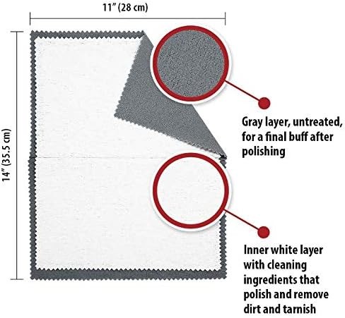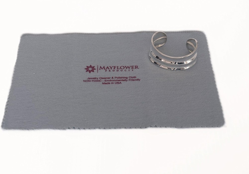 Pro Size Polishing Cleaning Cloth Pure Cotton Made in USA for Gold, Silver, and Platinum Jewelry, Eco Friendly Large Cleaner Cloth 11 x 14 in. Keeps Jewelry Clean and Shiny Product Details Product Dimensions: 14 x 11 x 0.04 inches Item model number: J1114GW Is Discontinued By Manufacturer: No Item Weight: 0.64 ounces Manufacturer: Mayflower Products LLC Scent: Unscented Brand: Mayflower Products Sheet Count: 2 Package Information: Bag Item Form: rectangular SHINES AND PROTECTS: This jewelry polishing cloth cleans, shines, and protects gold (14 k and 18 K), silver, platinum jewelry, coins, and other fine valuables. It's a tarnish remover cloth that restores the original brilliance in metals, prevents new tarnishes and gives jewelry a layer of protection. VALUE. It has three uses: silver polishing cloth, gold polishing cloth, and platinum polishing cloth (great for diamond rings) SAFE for your health and the environment. The inner part of the jewelry cleaner cloth is treated with non toxic ingredients that keep your health safe and protect the environment TWO-STEP SYSTEM: The jewelry cloth has the cleaning ingredients dry-impregnated in the white flannel to clean and polish effectively. Each side of the white cloth has cleaning properties. The untreated gray flannel adds a final shine. Both flannels are made of ultra-soft cotton for gentle cleaning of your valuables. REUSABLE: The polishing cloth can be used multiple times. The life of the cloth depends on the size and number of items cleaned. It can last a long time and should never be washed. PRO SIZE: The size of this large jewelry cleaning cloth is designed for easy polishing of silverware, watches, silver musical instruments, antiques, and big pieces of jewelry. It also provides a better handle for small pieces such as silver rings, coins, medals, and more. The size of each Pro Size jewelry cloth opened is 11 x 14 inches