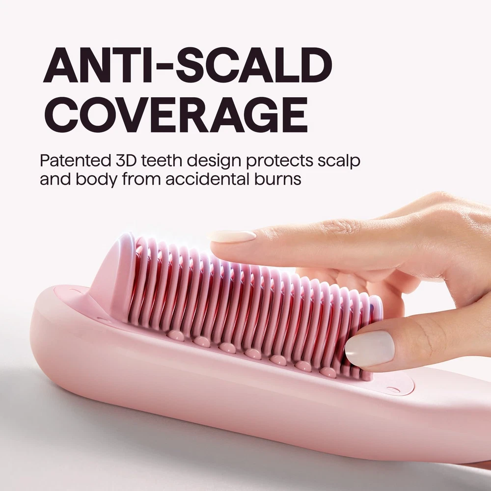 With Steam-Kissed Straightening in minutes, you can redefine your hair brushing routine, making it quicker and more effective. This innovative method uses steam to gently straighten your hair, leaving it smooth and shiny in just a few minutes. Say goodbye to long, damage, tedious brushing sessions and embrace a new, efficient routine. 3-in-1 Streamline Pro Hair Straightener Brush: This innovative device combines the functionalities of a hair straightener, comb, and hair steam care, allowing you to effortlessly achieve hair that is 101% shinier, 77% smoother, with 62% less frizz, and 27% more resistant to breakage compared to traditional flat irons in your daily grooming routine Hair Hydration: The "Hydro-Infusion" technology of this steam straightening brush utilizes advanced ultrasound and circular heating to convert water molecules into evenly heated vapor. The steam emitted through the nano-mist nozzles disperses as a mist-like vapor, releasing steam at a rate of 0.5ml/min intermittently. The visibility of the steam is relatively low, yet it deeply nourishes each strand of hair, providing necessary moisture to prevent frizz and enhance luster. Faster Straightening: This heated steam brush reaches its optimal temperature in just 30 seconds. Completing the three major steps of hair straightening, brushing, and hair hydration takes only 10 minutes. Compared to traditional flat iron, allowing for a more efficient use of your styling time Anti Scald Coverage: The straightening comb is equipped with a full anti-scald shell, effectively reducing the risk of burns from exposed heating elements for a safe touch. Additionally, the deep wave tip design of the teeth enhances the grip on the hair strands Other Features: This straightening brush features 4 temperature settings to cater to the needs of various hair types. The 30 minute automatic off function ensures a safety for you and your family. Furthermore, the device offers universal voltage compatibility and comes with a variety of accessories
