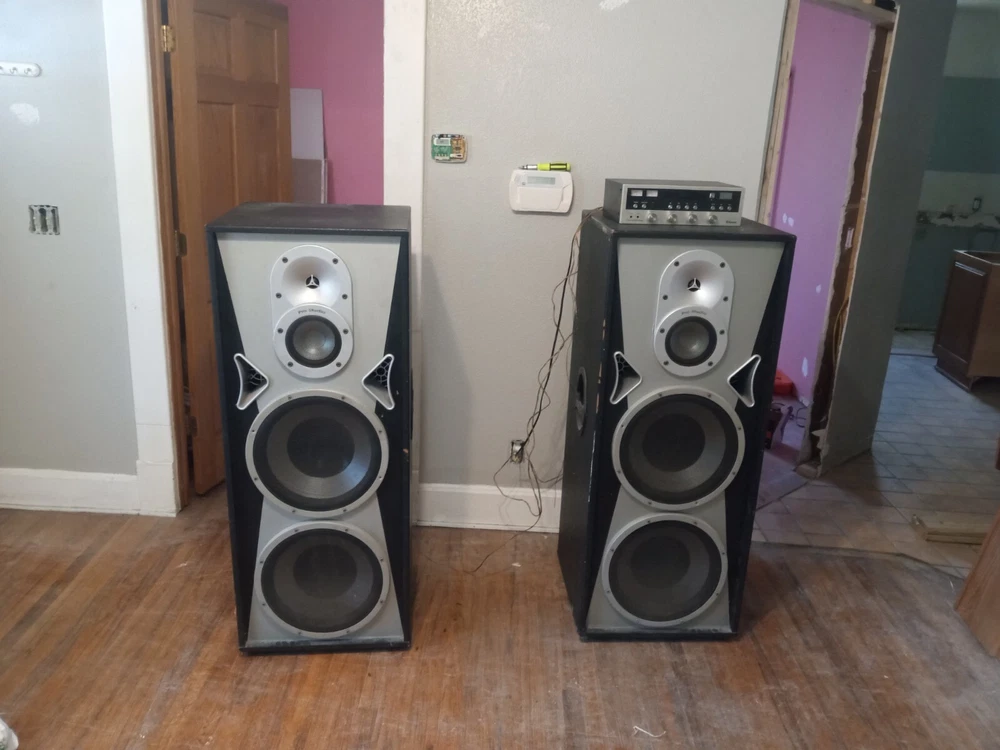 Experience high-quality sound with these Pro Studio Huge House Tower Speakers. Designed for music enthusiasts, these speakers provide a clear and powerful audio experience. The brand is well-known for its durability and reliability, making it a popular choice for professionals in the industry. Featuring a unique design, these speakers are perfect for any musical setup. The model is specifically designed to provide a premium audio experience, making it an excellent choice for those who want to take their music to the next level. Whether you're a musician or a professional audio engineer, these speakers are sure to impress. Have two 15s a I think 8 or 5 inch speaker and tweeter. They do have some scratches and stuff but work great are loud as hell. Have regular hook ups. Suggest a higher grade speaker wire