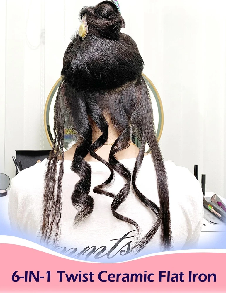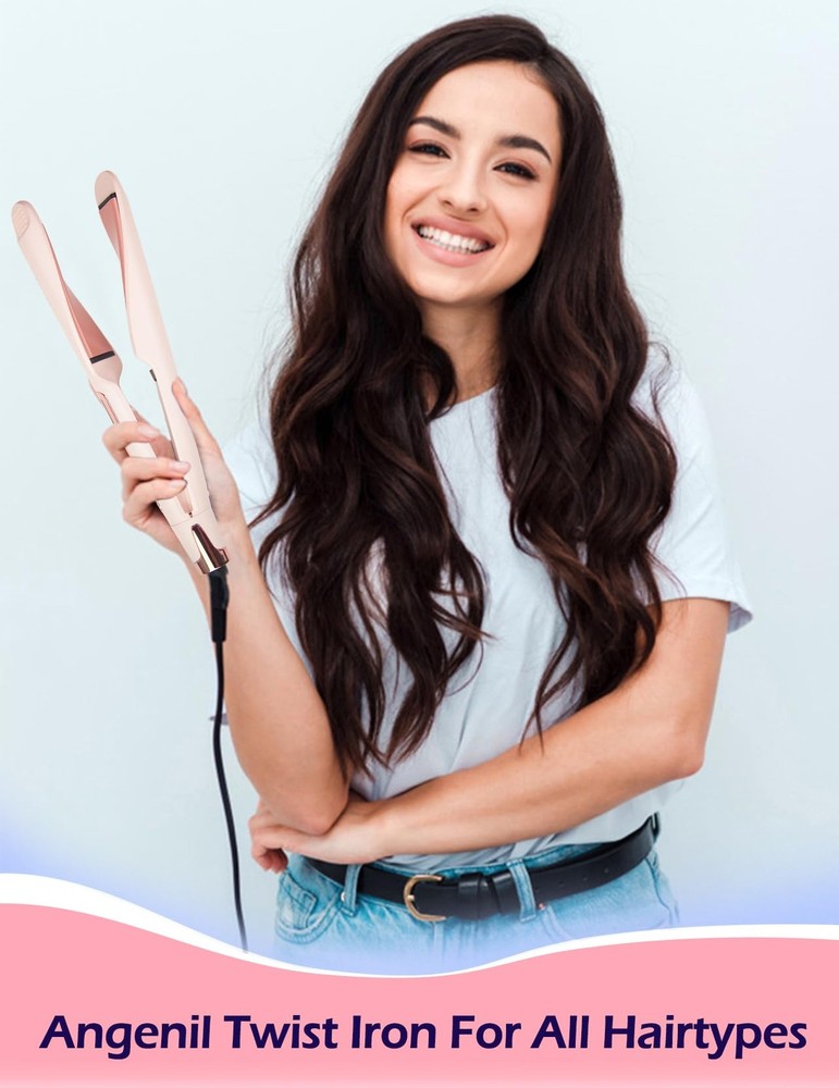 Pro Twist Flat Iron 1 Inch, Round Pink Dual Voltage Hair Straightener and Curler 2 in 1, Tourmaline Ceramic Ionic Hair Curler with Anti-Scalding Silicone Mat Pad, 30s Fast Heating, LCD Display 🌟【SALON-LEVEL PRO TWIST HAIR STRAIGHTENER】Our straightener adopts advanced PTC heating technology, and focuses on women's hairdressing, which can quickly and easily create professional salon level styling. It has 11 levels of adjustable fine temperature ranging from 250 ° F to 450 ° F, which can intelligently maintain a constant temperature, protect hair from damage, and enhance the natural luster of hair 🌟【MULTI 6-IN-1 TOOL】 Our hair straightener features a unique twisted panel design, evenly heated panels, and a circular appearance design. Whether you have coarse, fine, or short hair, it can be easily straightened or curled. Gently sliding over your hair can achieve a glossy, non frizzy surface, creating a professional sandron level look 🌟【Advanced Nursing Technology】This straightener contains 70 million negative ions, which can release a large amount of negative ions, neutralize static electricity, lock in hair moisture, provide better hair care, restore hair health, enhance hair luster, and reduce hair frizz 🌟【DUAL VOLTAGE TRAVEL FLAT IRON】The voltage range of 110V-240V is globally applicable, equipped with a heat-resistant bag for easy storage, and a lock buckle design for easy carrying in your bag. It heats up quickly in 30 seconds, saving you time. In addition, we have a 60 minute automatic shutdown function, suitable for going out to parties or traveling. 🌟【EASY TO USE】The Pro straightener is thoughtfully equipped with a temperature. The rotating rope design allows for 360 degree rotation to prevent tangling
