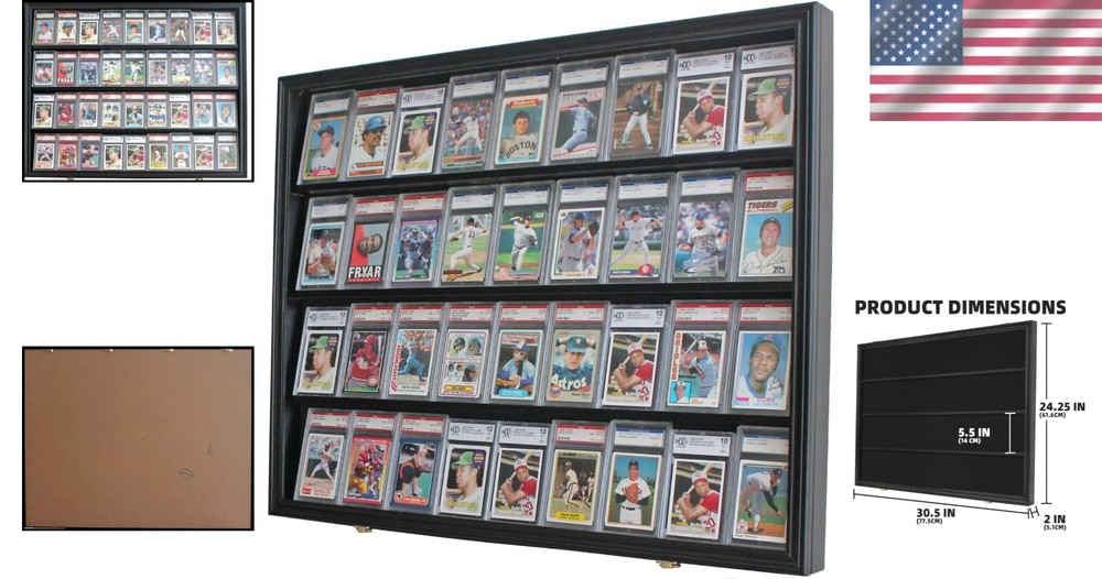 Pro UV 36-Card Display Case for Football, Baseball & Basketball in Black Finish ‹ › ‹ › ‹ › ‹ › ‹ › ‹ › ‹ › ‹ › ‹ › ‹ › ‹ › Pro UV 36-Card Display Case - Ideal for Football, Baseball & Basketball Cards - Elegant Black Finish - Cards NOT Included Product Overview: Showcase your prized sports card collection with our elegant Pro UV 36-Card Display Case, designed meticulously for the discerning collector. With a sophisticated black finish, this display case holds up to 36 graded cards or 48 hard sleeves, ensuring your treasures are both visible and protected. Key Features: Dimensions: 30.5" W x 24.25" H x 2" D Holds graded/ungraded cards up to 5.5" tall - perfect for professional football, baseball, basketball, and hockey trading cards. Made of Grade A+ acrylic with 96% clarity and 98% UV protection to prevent fading. Lockable anti-theft locks keep your valuable memorabilia safe. Pre-installed metal brackets on the back for easy wall mounting – hooks included. Why Choose Our Display Case? This display case is not only functional but also adds an exquisite touch to any room. Its unparalleled visibility combined with advanced UV protection ensures your precious collectibles remain in pristine condition, while the aesthetically pleasing black finish elevates the decor of any space. Whether you’re organizing your own collection or seeking the perfect gift for the sports enthusiast in your life, this display case is a remarkable choice. Make your collection the centerpiece of admiration – order your Pro UV 36-Card Display Case today! Shipping Free & Fast Shipping - We offer free shipping to most of the USA with a normal delivery time of 3-10 businessdays. However, due to various situations, additional delivery time (up to 3 weeks) may be required for some items. Alternative Carriers - We may use alternative carriers (e.g. USPS, FedEx, UPS, etc.) to ensure your package arrives safely and on time. Due to the use of multiple carriers, we are unable to provide a tracking number automatically. Handling Time - Orders are processed and shipped within 1-5 business days of receiving cleared payment. Shipping Restrictions - Shipping to Alaska, Hawaii, Puerto Rico, Guam, and other US territories may incur shipping charges or delivery restrictions. Please contact us before ordering, or your order can be refunded/cancelled. State Restrictions - There may be restrictions based on your state of purchase. For example, certain items may not be shipped to California due to state regulations. Contact for Tracking Updates - If you require tracking updates or have any concerns about the delivery of your order, please feel free to contact us, and we will be happy to assist you. Return Please see our ebay return policy. We do not accept return on most products. This is to avoid customers mis-using ebay returns. All sales are final. Please be sure to check the return policy listed at the top of the listing. In rare cases, we may accept returns, if the buyer pays both ways shipping and 20% restocking fee. If you are un-sure of return policy of a particular item, please ask before buying. Payment We accept all major credit cards, PayPal, and Apple Pay for your convenience. Your payment information is secure and encrypted to ensure a safe and seamless transaction. Please complete your payment within 3 days of purchase to avoid any delays in shipping. Feedback Your feedback is extremely important to us. We strive to provide the best products and customer service possible. If you are satisfied with your purchase, please take a moment to leave us a positive review. If you have any concerns or issues with your order, please contact us before leaving negative feedback. We are committed to resolving any problems and ensuring your satisfaction. Contact Us If you have any questions or concerns, please feel free to reach out to our customer support team. You can contact us through the eBay messaging system. We are available Monday to Friday, 9:00 am to 5:00 pm EST, and we will do our best to respond to your inquiry within 24 hours. Buy it now and enjoy a pleasant shopping experience! UPC: Not Set Autograph Format: Not Set Material: Acrylic Glass,Grade A+ acrylic Features: UV Protection,98% UV protection,96% transparency,Lockable anti-theft locks,Metal brackets,Wall hooks included Type: Display Case Brand: Unbranded Number of Toploaders/Card Holders: 36 Color: Black Finish Compatible Card Thickness: Not Set Card Holder Type: Not Set Compatible Card Size: Not Set Year Manufactured: Not Set Country/Region of Manufacture: Not Set Signed By: Not Set Item Length: Not Set Item Height: 24.25 Inches MPN: Not Set Autographed: Not Set Inscribed: Not Set