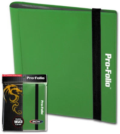 The included picture is a stock image * Acid-Free, archival safe polypropylene pages. No PVC * Matte green front and back cover * Elastic band closure * Contains 20 premium double-sided pages * Side-loading, 4-pocket pages The BCW Pro-Folio will accommodate at least 160 cards and features side-loading pockets to deter the cards from sliding out of place. Our archival safe polypropylene pages will not harm the cards stored within and offer an attractive method to both store and display your collectibles. We offer a combined shipping discount. Just add the items you are interested in to your eBay cart to determine your combined shipping cost and options. Thanks for shopping with ABUGames!