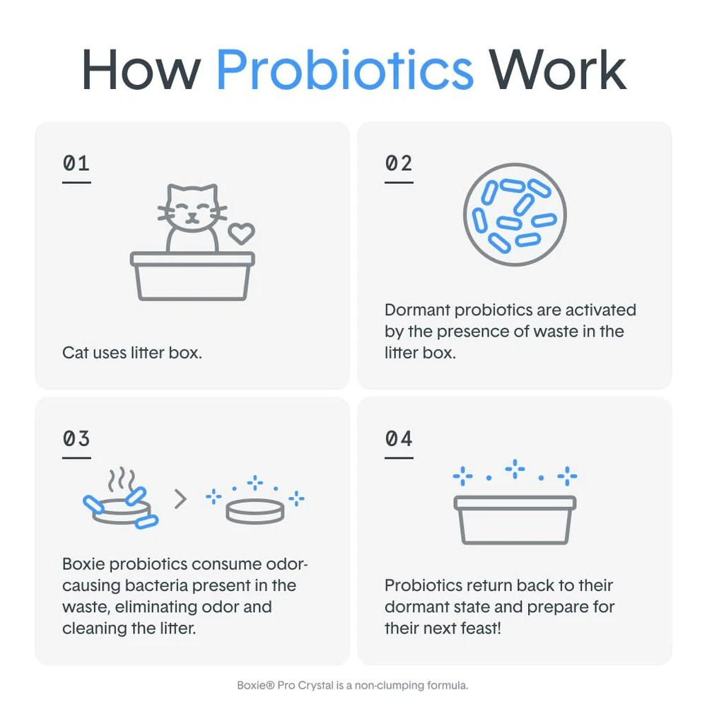 Probiotic 40 Day Natural Odor Control Cat Litter, 28lb Clumping Clay Kitty Litter Item Weight 12.7 Kilograms Material Clay Scent Scent Free UPC 855978006246 Global Trade Identification Number 00855978006246 Unit Count 28 Pounds GUARANTEED ODOR CONTROL: 40-day odor control guarantee (2x longer than leading competitors). Compared to chemical products, Boxie Pro probiotics work for 24 hours to mitigate the cause of odor, instead of masking it. Eliminates ammonia odor. 99.9% DUST FREE: Low dust levels means minimal tracking and less dust accumulating in your home. Formulated without cheap fillers and additives, there is no dust collection within litter. Boxie products are hypoallergenic. EASY TO CLEAN: Self-cleaning due to blend of probiotics that work 24/7 to clean litter after every use. Clumps form on the top of the litter box, rather than sticking to the sides or bottom. Perfect for regular, sifting, and mechanical litter boxes. MADE TO LAST: Boxie litter products last between 30-40 days (2x longer than other litters), making it the highest quality, longest lasting litter on the market. You only need to replace it once a month. VETERINARIAN APPROVED: No cheap fillers, artificial fragrances, harsh chemicals or preservatives in Boxie litter formulas, so you aren't bringing necessary toxins into your home. Compatible with Automatic Litter Boxes: Designed for smooth, hassle-free performance in all automatic litter boxes—because scooping should be a thing of the past! Probiotic 40 Day Natural Odor Control Cat Litter, 28lb Clumping Clay Kitty Litter Probiotic 40 Day Natural Odor Control Cat Litter, 28lb Clumping Clay Kitty Litter Probiotic 40 Day Natural Odor Control Cat Litter, 28lb Clumping Clay Kitty Litter Probiotic 40 Day Natural Odor Control Cat Litter, 28lb Clumping Clay Kitty Litter Shipping We offer FREE shipping on all orders! We ship within Three business days of payment, usually sooner. We use a selection of shipping services such as UPS, FedEx, USPS etc. We only ship to the lower 48 states, no APO/FPO addresses or PO Boxes allowed. Local pickups and combined shipping options are not provided at this time. Return You can return a product for up to 30 days from the date you purchased it. Any product you return must be in the same condition you received it and in the original packaging. Please keep the receipt. Payment We accept payment by any of the following methods: PayPal Please pay as soon as possible after winning an auction, as that will allow us to post your item to you sooner! Feedback Customer satisfaction is very important to us. If you have any problem with your order, please contact us and we will do our best to make you satisfied. Contact Us If you have any queries, please contact us via ebay. We usually respond within 24 hours on weekdays. Please visit our eBay store to check out other items for sale! Thank you for shopping at our store.