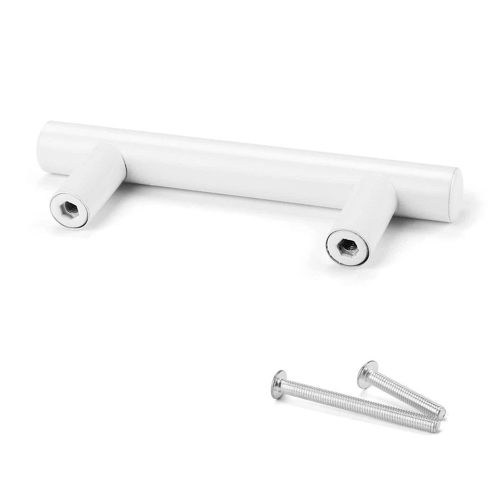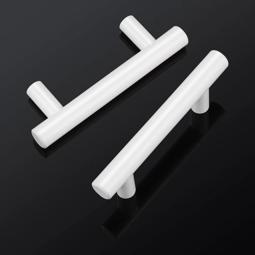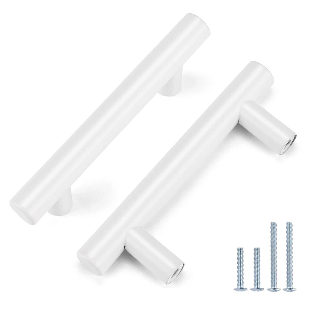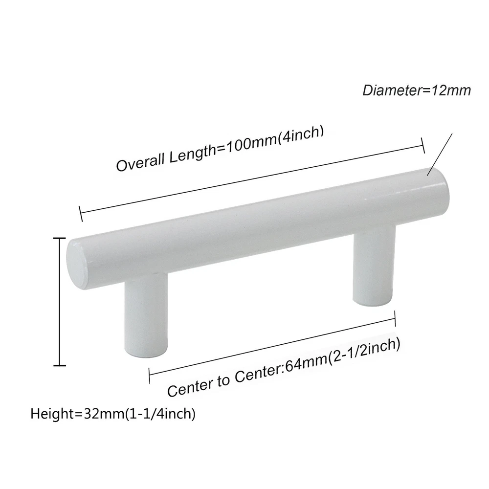 White cabinet handles Made of High Quality Stainless Steel with beautiful looking, durable and strong.Make cabinet hardware a part of your home decor today. 【MEASUREMENT】: 2-1/2 inch(64mm), Total Length:4 inch(100mm), Diameter:1/2 inch(12mm) Projection:1-1/4 inch(32mm) 【FUNCTION】Cabinet handles set, suitable for different styles of bedroom dressers, cabinets, wardrobe, wine cabinet, locker. 【SCREW】:The screws included are M4X25mm,1" length will fit for 14mm(0.55")-19mm(0.75") thickness board. 【WARRANTY】:Please feel free to let me know if you have any question, all problems will be solved under our service.