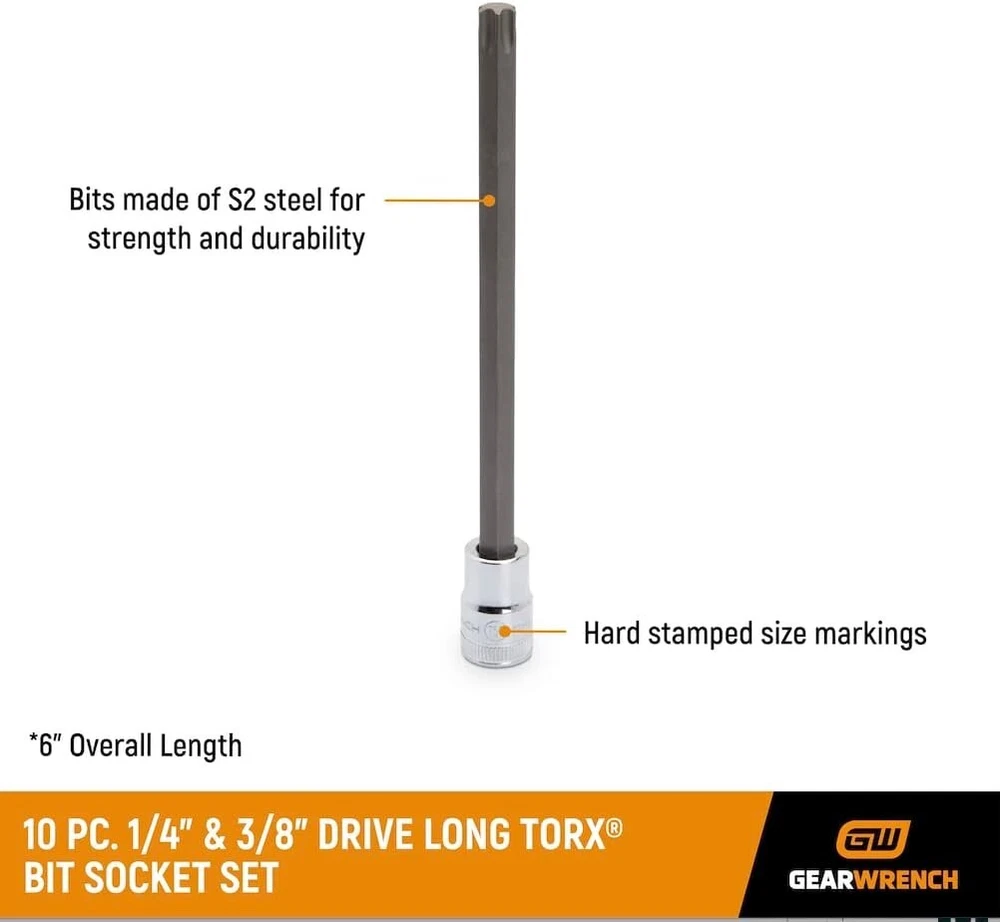 Professional 10-Piece Torx Bit Socket Set - Corrosion-Resistant Chrome Finish ‹ › ‹ › ‹ › ‹ › ‹ › ‹ › ‹ › ‹ › ‹ › ‹ › ‹ › ‹ › ‹ › ‹ › ‹ › Professional 10-Piece Torx Bit Socket Set Corrosion-Resistant Chrome Finish Features: Bits made of high-strength S2 steel for exceptional durability. Heat-treated socket base for maximum strength and longevity. Large, hard-stamped markings for easy size identification. Available in standard, mid, and long bit lengths, accommodating a range of projects. Includes sizes T8, T10, T15, T20, T25, T27, T30, T40, T45, and T50. Precision cold-formed sockets for consistent dimensions and optimal performance. Six-inch length for easy access to hard-to-reach areas. Benefits: Achieve unprecedented speed and strength in any job. Lifetime corrosion resistance ensures your tools remain in peak condition. Precisely engineered for a snug fit, reducing the risk of stripping. Perfectly designed for both professionals and DIY enthusiasts alike. Heat resistance enhances durability, making them suitable for rigorous tasks. Why choose our Professional Torx Bit Socket Set? This 10-piece Torx Bit Socket Set is not just another toolset, it's a commitment to quality and excellence in every project you undertake. Engineered from premium S2 steel and featuring a heat-treated socket base, this set is designed to handle the toughest jobs, giving you confidence in your work. The extended length of 6 inches ensures that you can tackle even the most challenging access points with ease, while the corrosion-resistant chrome finish guarantees that your tools will endure the test of time. Say goodbye to frustration and hello to efficiency with effortless identification of sizes, thanks to the large, hard-stamped markings. Elevate your toolbox with our Professional 10-Piece Torx Bit Socket Set today. Experience the difference that quality tools can make! Shipping Free & Fast Shipping - We offer free shipping to most of the USA with a normal delivery time of 3-10 businessdays. However, due to various situations, additional delivery time (up to 3 weeks) may be required for some items. Alternative Carriers - We may use alternative carriers (e.g. USPS, FedEx, UPS, etc.) to ensure your package arrives safely and on time. Due to the use of multiple carriers, we are unable to provide a tracking number automatically. Handling Time - Orders are processed and shipped within 1-5 business days of receiving cleared payment. Shipping Restrictions - Shipping to Alaska, Hawaii, Puerto Rico, Guam, and other US territories may incur shipping charges or delivery restrictions. Please contact us before ordering, or your order can be refunded/cancelled. State Restrictions - There may be restrictions based on your state of purchase. For example, certain items may not be shipped to California due to state regulations. Contact for Tracking Updates - If you require tracking updates or have any concerns about the delivery of your order, please feel free to contact us, and we will be happy to assist you. Return Please see our ebay return policy. We do not accept return on most products. This is to avoid customers mis-using ebay returns. All sales are final. Please be sure to check the return policy listed at the top of the listing. In rare cases, we may accept returns, if the buyer pays both ways shipping and 20% restocking fee. If you are un-sure of return policy of a particular item, please ask before buying. Payment We accept all major credit cards, PayPal, and Apple Pay for your convenience. Your payment information is secure and encrypted to ensure a safe and seamless transaction. Please complete your payment within 3 days of purchase to avoid any delays in shipping. Feedback Your feedback is extremely important to us. We strive to provide the best products and customer service possible. If you are satisfied with your purchase, please take a moment to leave us a positive review. If you have any concerns or issues with your order, please contact us before leaving negative feedback. We are committed to resolving any problems and ensuring your satisfaction. Contact Us If you have any questions or concerns, please feel free to reach out to our customer support team. You can contact us through the eBay messaging system. We are available Monday to Friday, 9:00 am to 5:00 pm EST, and we will do our best to respond to your inquiry within 24 hours. Buy it now and enjoy a pleasant shopping experience! Manufacturer Part Number: Torx Bit Socket Set UPC: Not Set Unit Quantity: 1.55 Tools Included: Not Set System of Measurement: Metric,SAE Size: 1/4in.,3/8in. Brand: Unbranded Socket Type: Standard Drive Type: Torx Drive Size: 1/4in. Surface Finish: Nickel-Chrome Warranty: No Warranty Number of Pieces: 10 Country/Region of Manufacture: Not Set Unit Type: lb Set or Single Item: Not Set