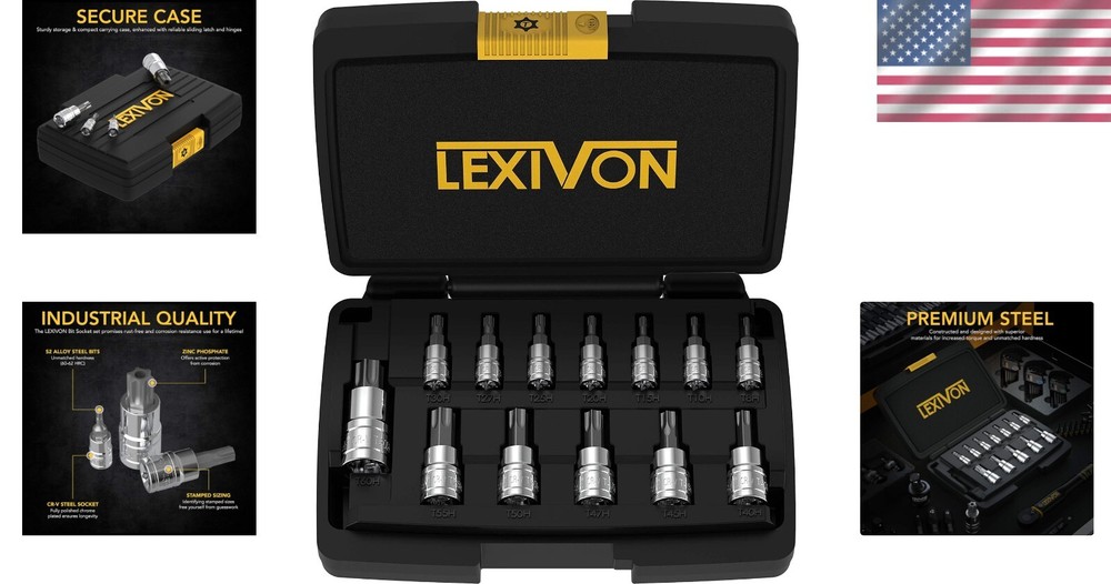 Tamper Proof Torx Bit Socket Set - S2 Steel, 13-Piece for Professionals ‹ › ‹ › ‹ › ‹ › ‹ › ‹ › ‹ › ‹ › ‹ › Tamper Proof Torx Bit Socket Set - S2 Steel, 13-Piece for Professionals Discover the ultimate in precision and durability with our 13-Piece Tamper Proof Torx Bit Socket Set, crafted for both the discerning DIY-ers and seasoned professionals. Why Choose Our Tamper Proof Torx Bit Socket Set? Construction: Each bit is expertly crafted with superior materials, designed for increased torque and unmatched hardness. Unmatched Durability: The drop-forged, heat-treated S2 alloy steel bits are built to reduce wear-outs, while the hardened chrome vanadium steel sockets enhance turning power. Longevity Assured: Our sockets feature a fully polished, chrome-plated mirror finish for complete rust and corrosion resistance, ensuring they stand the of time. User-Friendly Design: Experience smooth insertion with precision chamfered bit ends. Each size is conveniently stamped on the sockets and the heavy-duty storage case for quick recognition. Risk-Free Satisfaction: Meeting and exceeding ANSI standards, we back our set with a Lifetime Limited for your complete peace of mind. What’s Included: 13-Piece Tamper Resistant Torx Bit Socket - 1/4” Drive: T8H, T10H, T15H, T20H, T25H, T27H, T30H 3/8” Drive: T40H, T45H, T47H, T50H, T55H 1/2” Drive: T60H Storage & Carry Case (stamped bits sizes for easier recognition) Elevate Your Toolkit The Tamper Proof Torx Bit Socket Set is not just a toolset; it's an investment in quality and reliability, perfect for a wide range of applications from bikes to automobiles, appliances, lawn equipment, and beyond. With every bit crafted using CNC technology and designed with chamfered edges, rest assured your fasteners and tools are in safe, capable hands. Don't wait—empower your projects with confidence and precision. Click ‘Add To Cart’ now and experience the difference for yourself! Shipping Free & Fast Shipping - We offer free shipping to most of the USA with a normal delivery time of 3-7 days. However, due to the current situation, additional delivery time (up to 3 weeks) may be required for some items. Alternative Carriers - We may use alternative carriers (e.g. USPS, FedEx, UPS, etc.) to ensure your package arrives safely and on time. Due to the use of multiple carriers, we are unable to provide a tracking number automatically. Handling Time - Orders are processed and shipped within 1-2 business days of receiving cleared payment. Shipping Restrictions - Shipping to Alaska, Hawaii, Puerto Rico, Guam, and other US territories may incur shipping charges or delivery restrictions. Please contact us before ordering, or your order can be refunded/cancelled. State Restrictions - There may be restrictions based on your state of purchase. For example, certain items may not be shipped to California due to state regulations. Contact for Tracking Updates - If you require tracking updates or have any concerns about the delivery of your order, please feel free to contact us, and we will be happy to assist you. Return 30-Day Hassle-Free Returns - We want you to be completely satisfied with your purchase. If you are not, you can return the item within 30 days of receiving it for a full refund or exchange. Easy Return Process - To start a return, simply contact us and we will provide you with a prepaid return shipping label and detailed instructions. Restocking Fee - There are no restocking fees for returns. However, the buyer is responsible for return shipping costs if the return is not due to a seller's error. Refund Processing Time - Refunds will be processed within 5 business days of receiving the returned item in its condition. Payment We accept all major credit cards, PayPal, and Apple Pay for your convenience. Your payment information is secure and encrypted to ensure a safe and seamless transaction. Please complete your payment within 3 days of purchase to avoid any delays in shipping. Feedback Your feedback is extremely important to us. We strive to provide the best products and customer service possible. If you are satisfied with your purchase, please take a moment to leave us a positive review. If you have any concerns or issues with your order, please contact us before leaving negative feedback. We are committed to resolving any problems and ensuring your satisfaction. Contact Us If you have any questions or concerns, please feel free to out to our customer support team. You can contact us through the eBay messaging system. We are available Monday to Friday, 9:00 am to 5:00 pm EST, and we will do our best to respond to your inquiry within 24 hours. Buy it now and enjoy a pleasant shopping experience! Manufacturer Part Number: Torx Bit Socket Set Unit Quantity: 1.46 Tools Included: Sockets System of Measurement: Specialty Size: T8H - T60H,T8H,T10H,T15H,T20H,T25H,T27H,T30H,T40H,T45H,T47H,T50H,T55H,T60H Socket Type: Standard Drive Type: Star Drive Size: 1/4in. Surface Finish: Chrome Number of Pieces: 13 Unit Type: lb