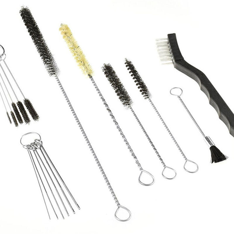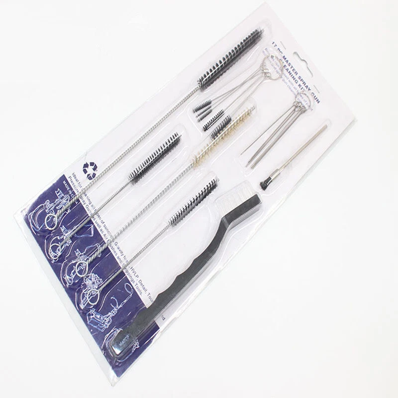 Master 17 Piece Professional Spray Gun Cleaning Kit. Protect your investment and keep your spray guns clean! Did you know that a well kept spray gun can last you 20 plus years? Keeping your gun clean after each use is all it takes. You can enjoy a healthy, clean spraying and functioning gun for years to come. Add this 17 piece master cleaning kit to your order today to protect your investment, you'll be glad you did. This is a quality made product with high bristle strength that will not melt like other cheaper versions sold online when cleaning your spray guns with solvents. Commodity specifications 1) 3 black nylon tube brushes Large: 11-1 / 2 "AOL x 7 / 16" diameter x working length 4“ Medium: 6-1 / 4 "AOL x 25 / 64" diameter x working length 2-1 / 4 "“ Small: 6 1 / 4 "AOL x 9 / 32" diameter x working length 2-1 / 4“ 2) 5pcs Mini Brush Set: Diameter 2 / 2.5 / 3 / 4 / 5mm 3) 6 needles: size: 9/10/11/12/13/14 4) 1 area black nylon brush 5) 1 white nylon tube brush 8-7 / 8 "AOL x 25 / 64" diameter x working length 3-1 / 4“ 6) 1 single side brush Plastic handle length 7“ Commodity materials Copper wire, stainless steel wire, galvanized iron wire