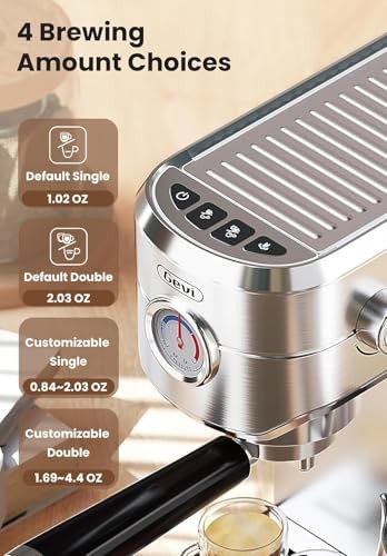 $ 125.28Slim Espresso Machine with Milk Frother Steam Wand, 20 Bar Professional Silver