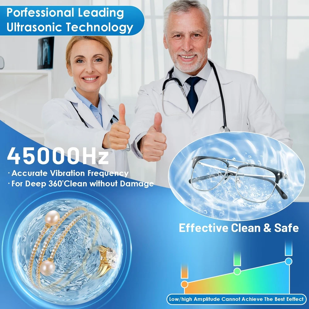 This ultrasonic jewelry cleaner is a game-changer! It effortlessly removes built-up grime from my rings and necklaces, leaving them sparkling like new. I love how versatile it is—works great on my glasses and watch too. The powerful 45kHz cleaning is gentle yet effective, and it’s so simple to use. Perfect for keeping my valuables pristine without harsh chemicals. Highly recommend for anyone who wants professional cleaning results at home!
